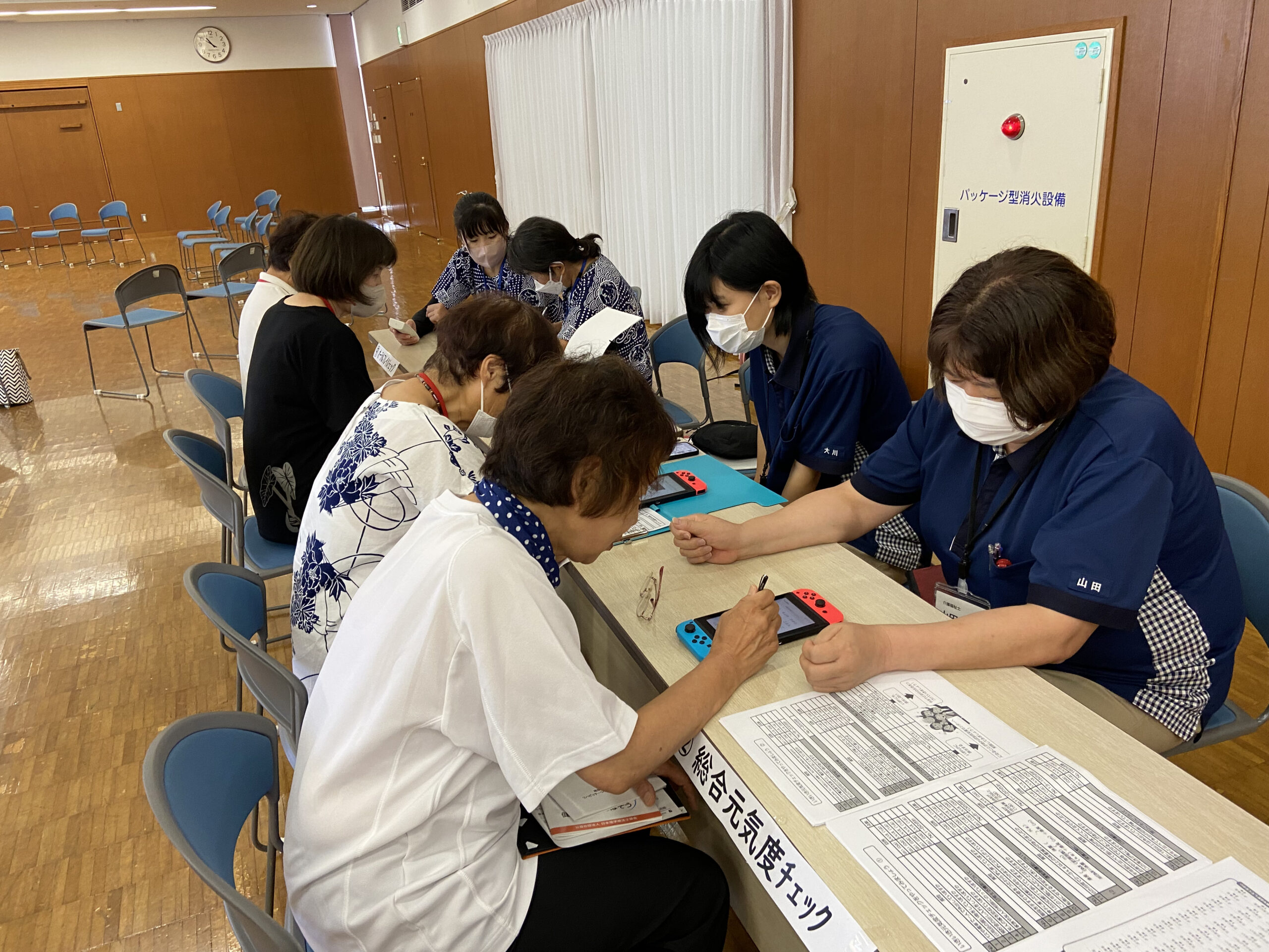 その後、機能訓練士の方の指導のもと、健康寿命のお話を聞きながらリハビリを実践。