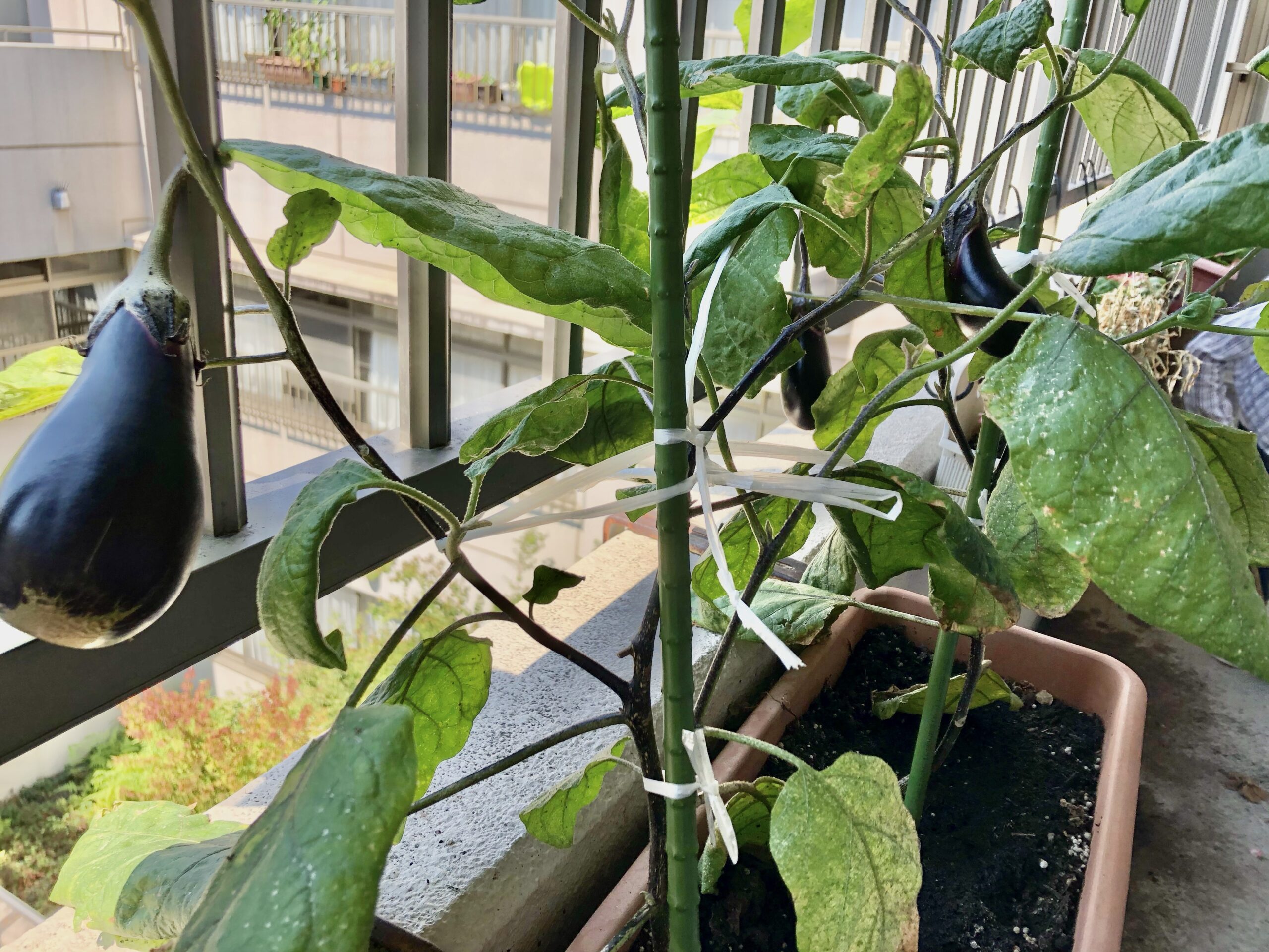 ナスも大きく育ち、手前や奥にも幾つか成っていますね。
