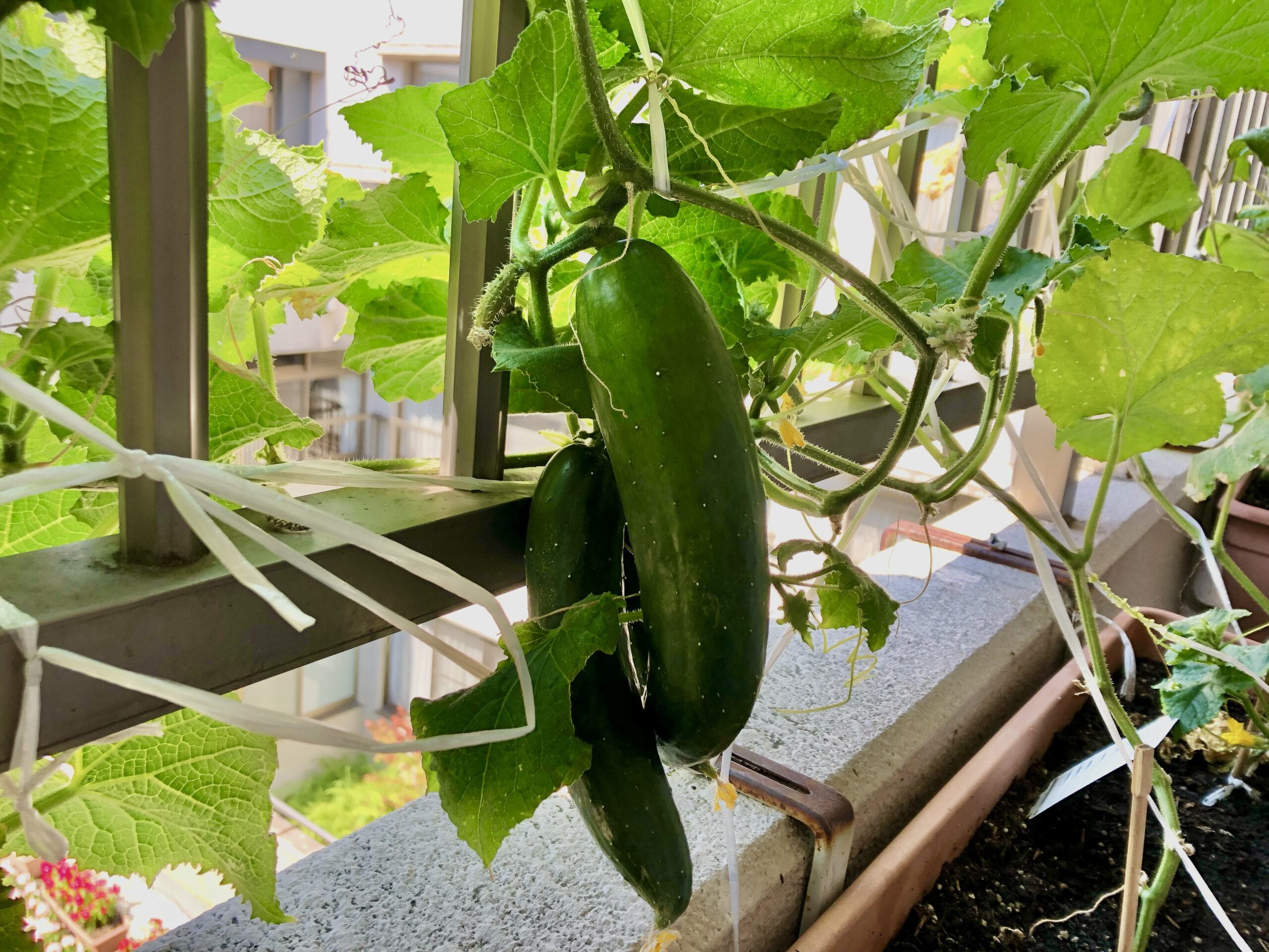 先月はまだ小さかったキュウリはどうなったでしょうか?