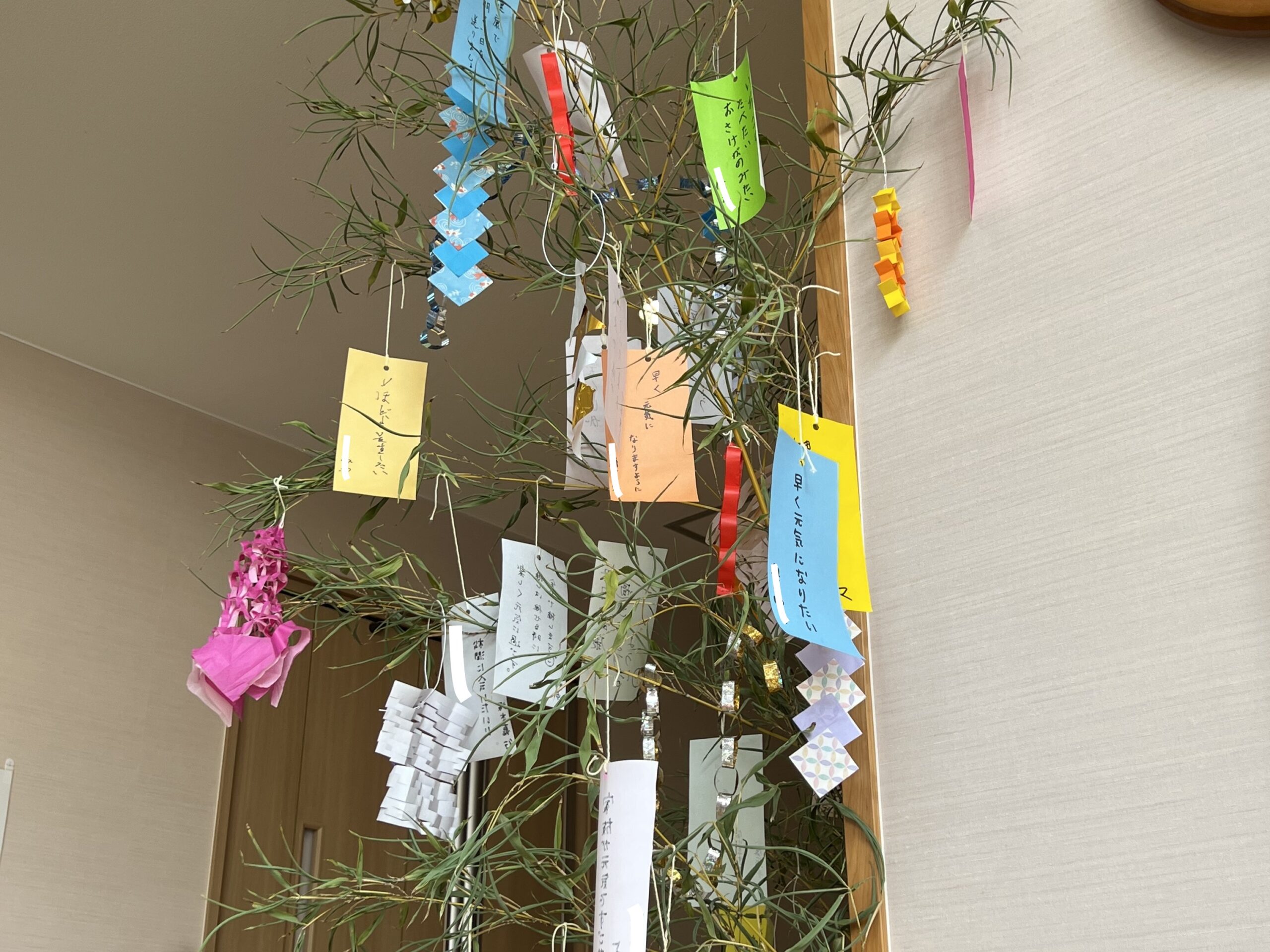 職員も含め、お客様が書いた短冊を見て、会話の種になり、七夕の時を楽しむことができました。