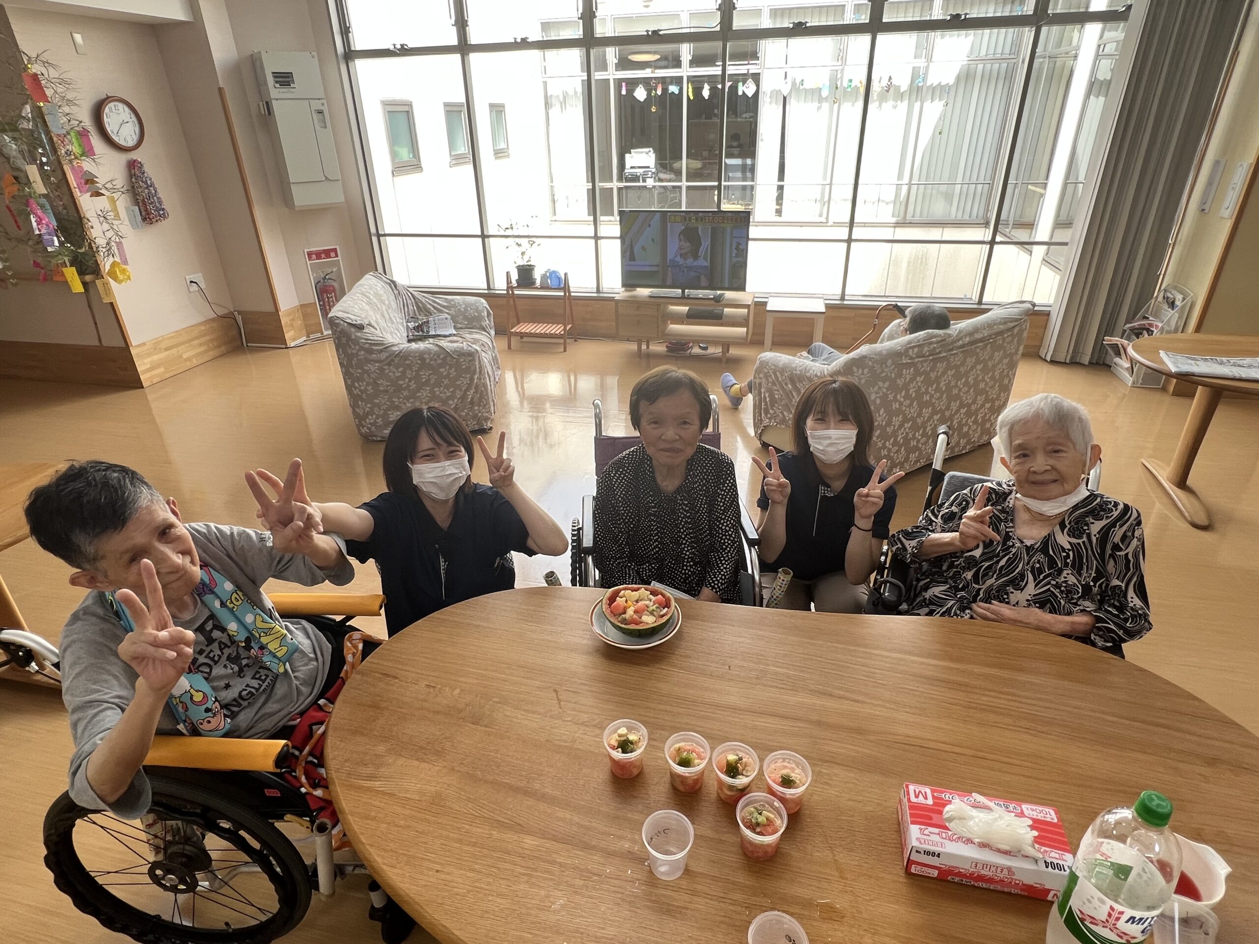 ユニット3階では、7月7日「七夕」をより楽しんでいただこうと、可愛らしい七夕デザートをお客様と一緒に作りました。