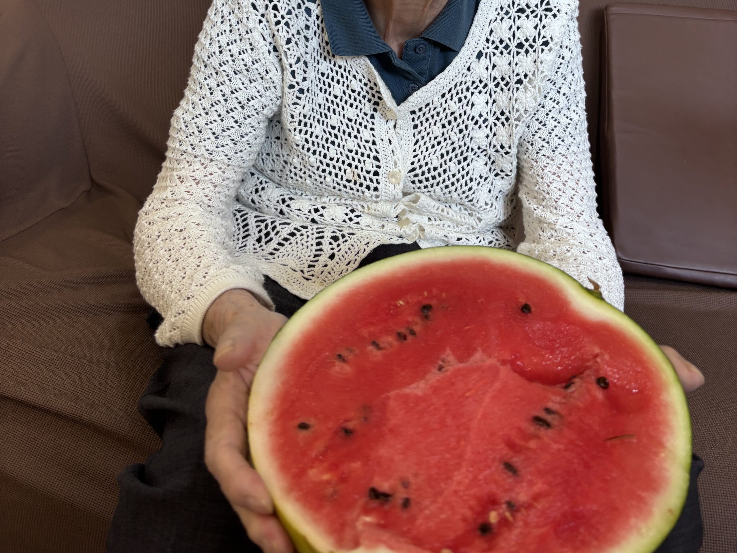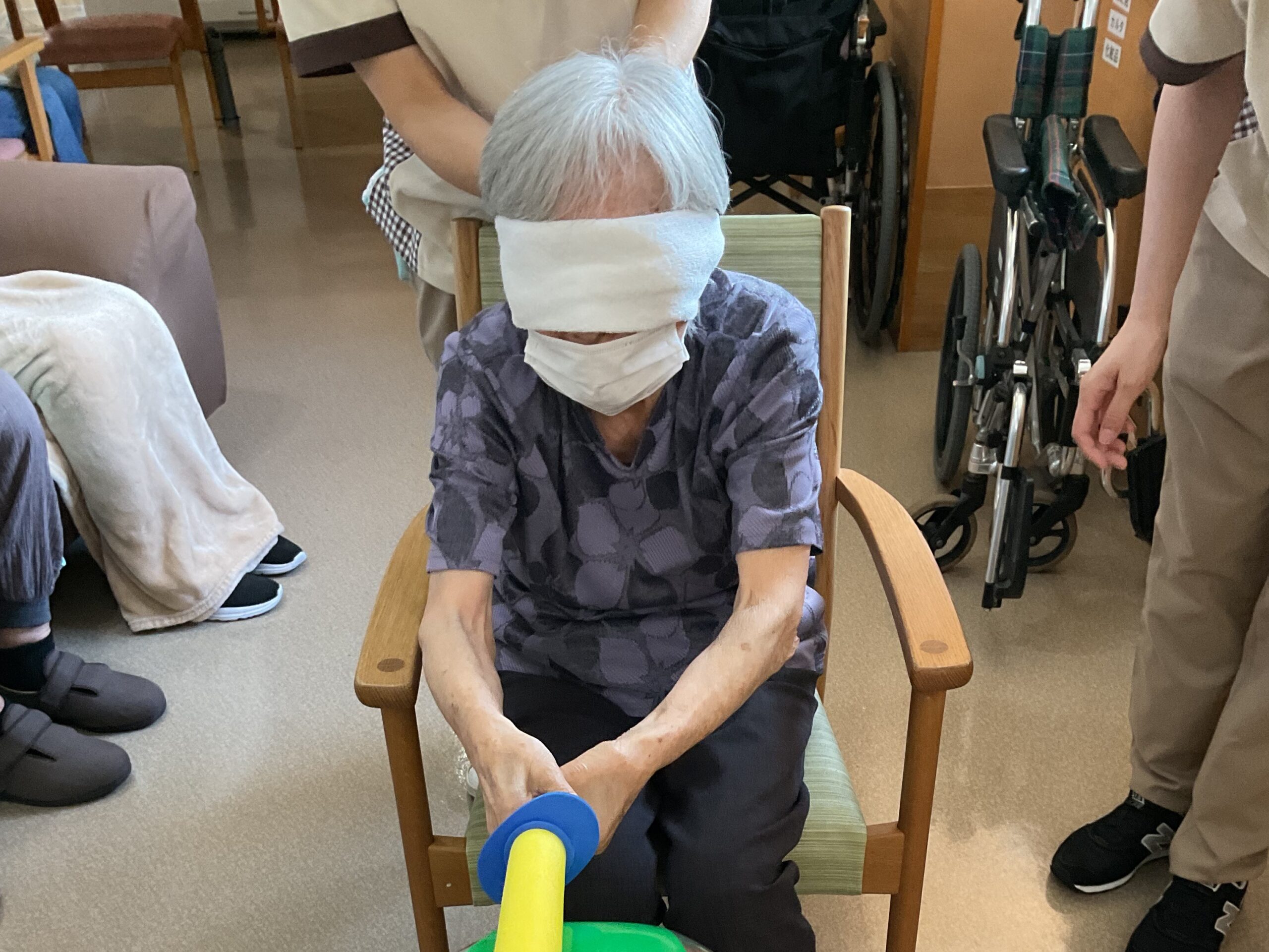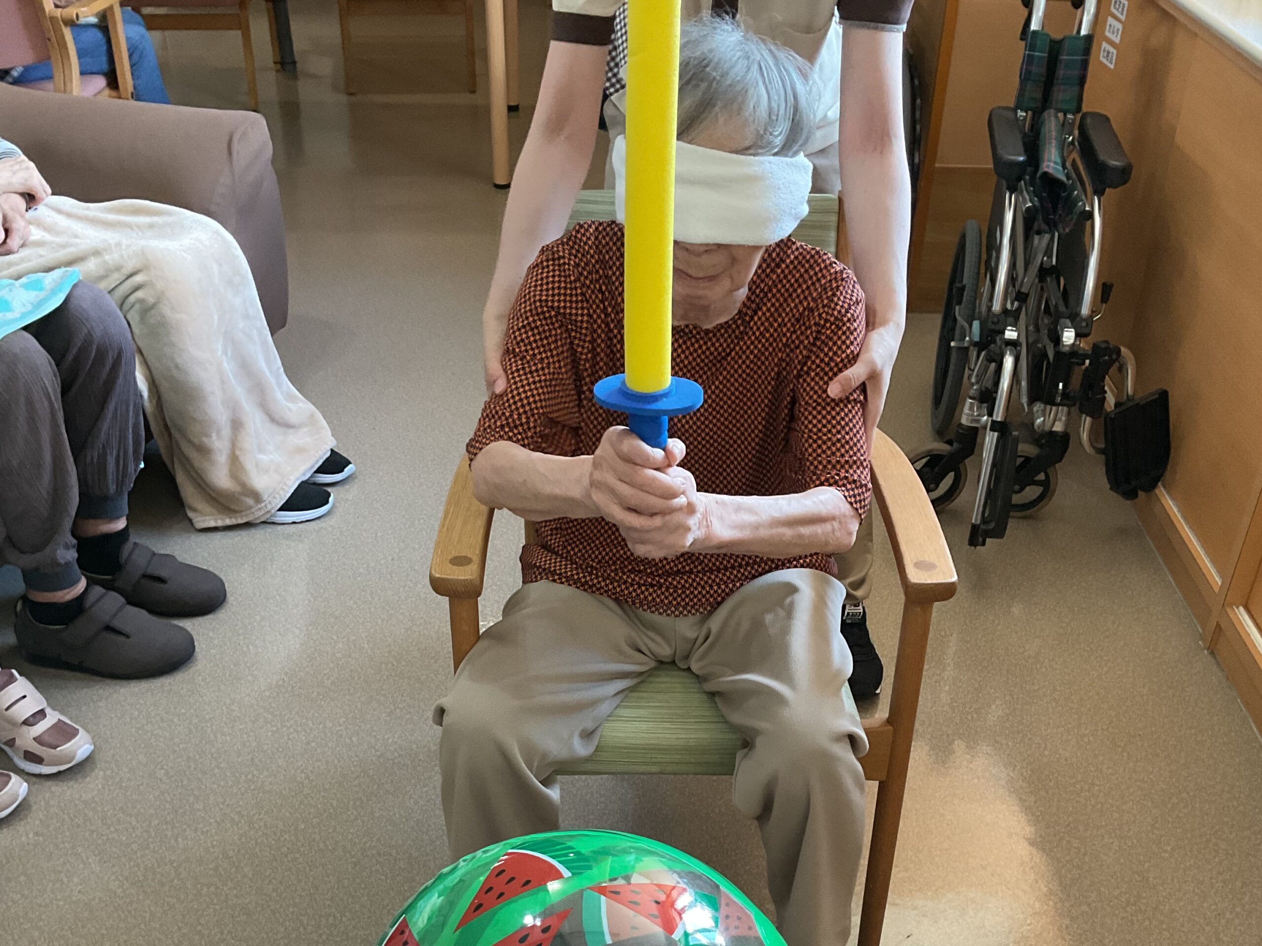 涼を感じていただきながら、楽しんでいただくため、スイカ割りのレクリエーションを企画しました。