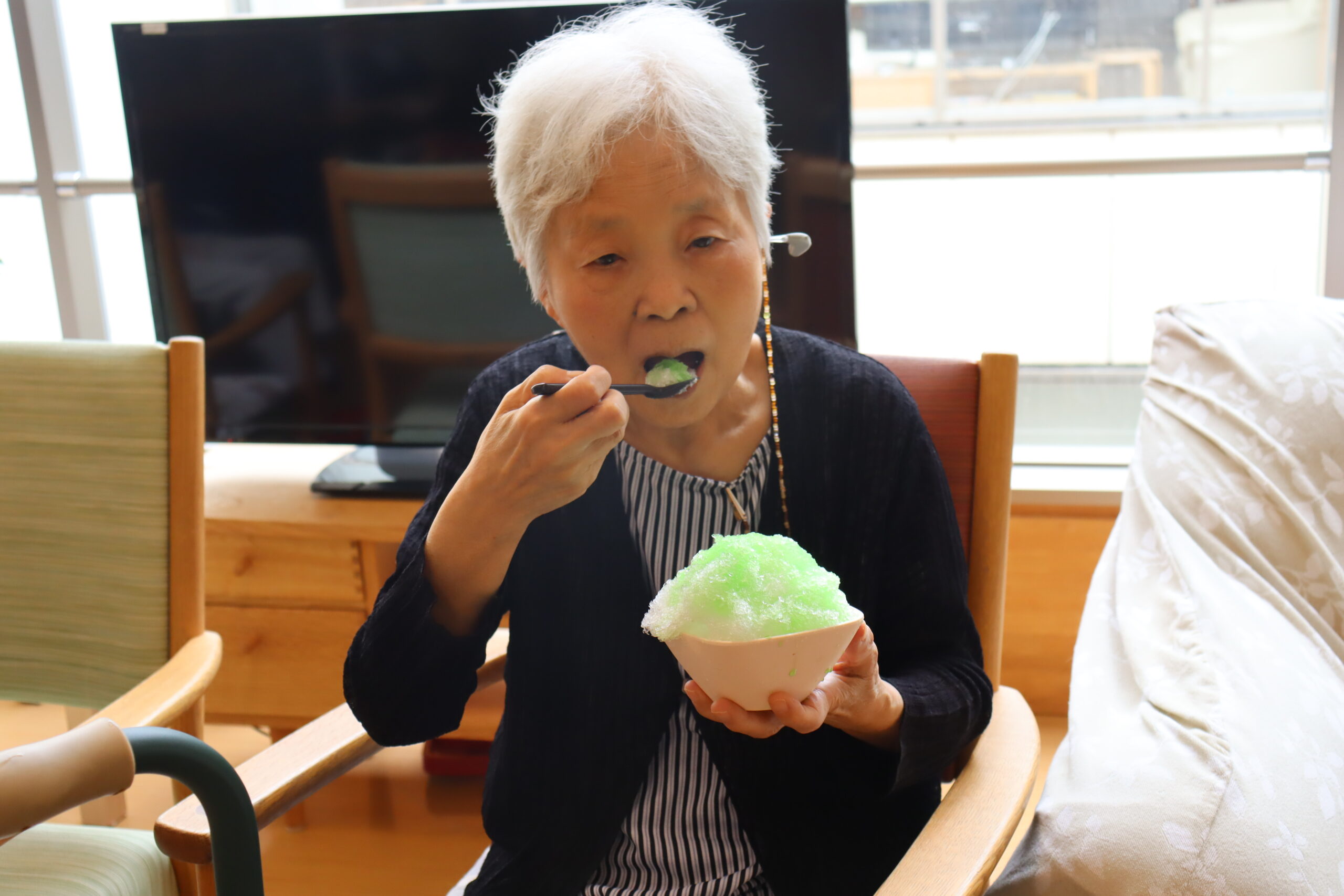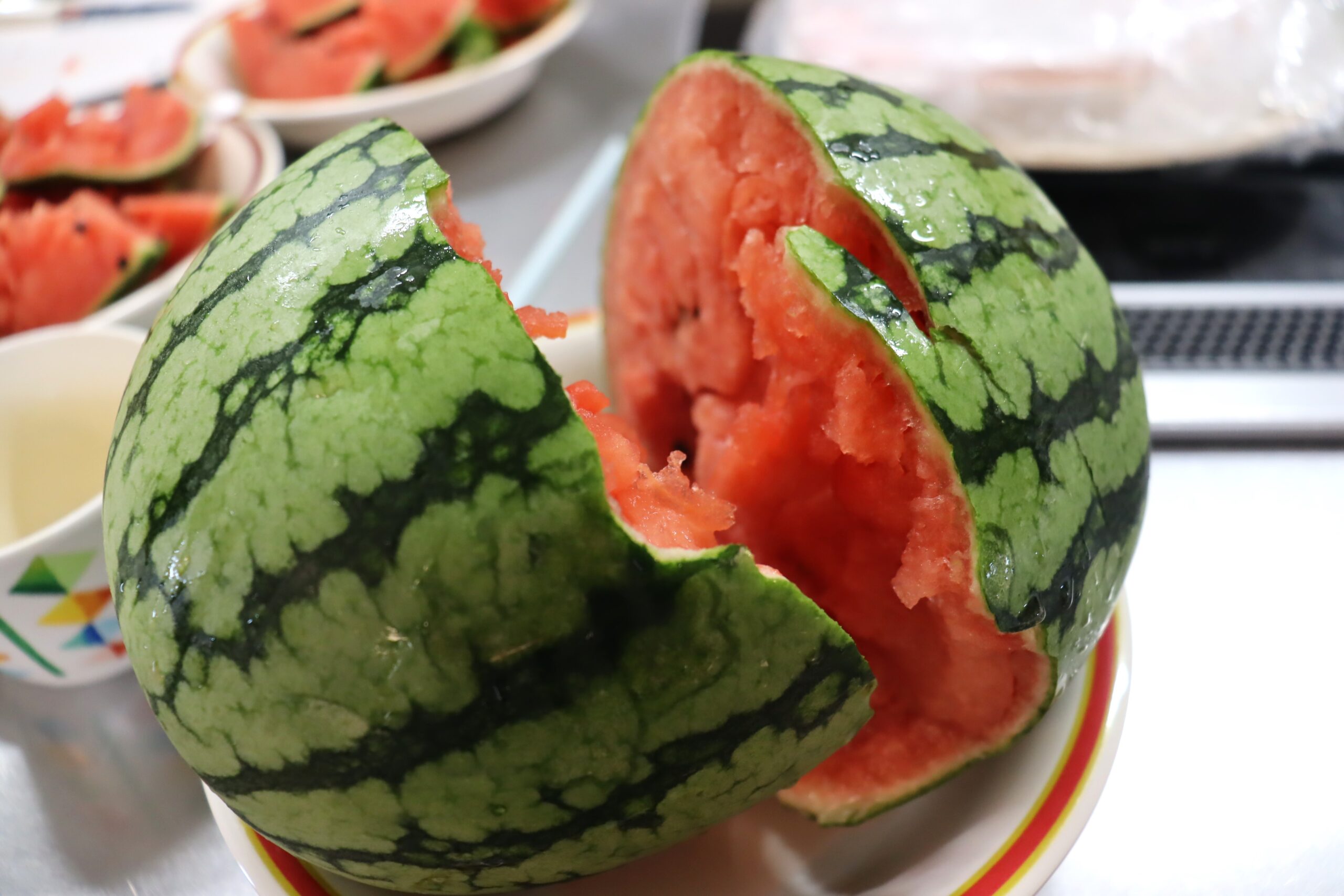 スイカ割りやかき氷を楽しまれている声を聴きながら