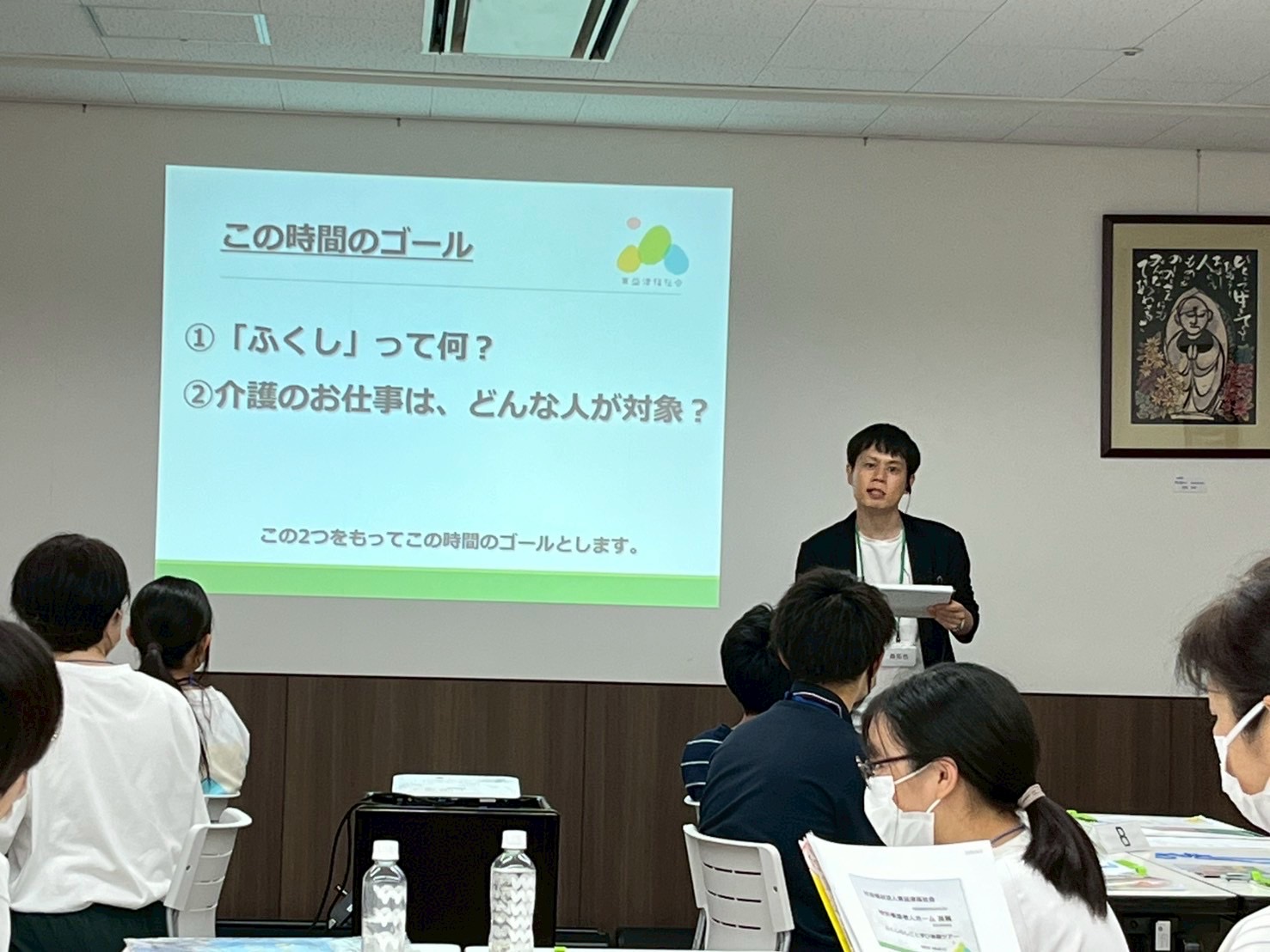高麓ではまず、「福祉」の意味や施設のことを知っていただき、初めて介護施設に来る方に特養やデイサービスを見学していただきました。