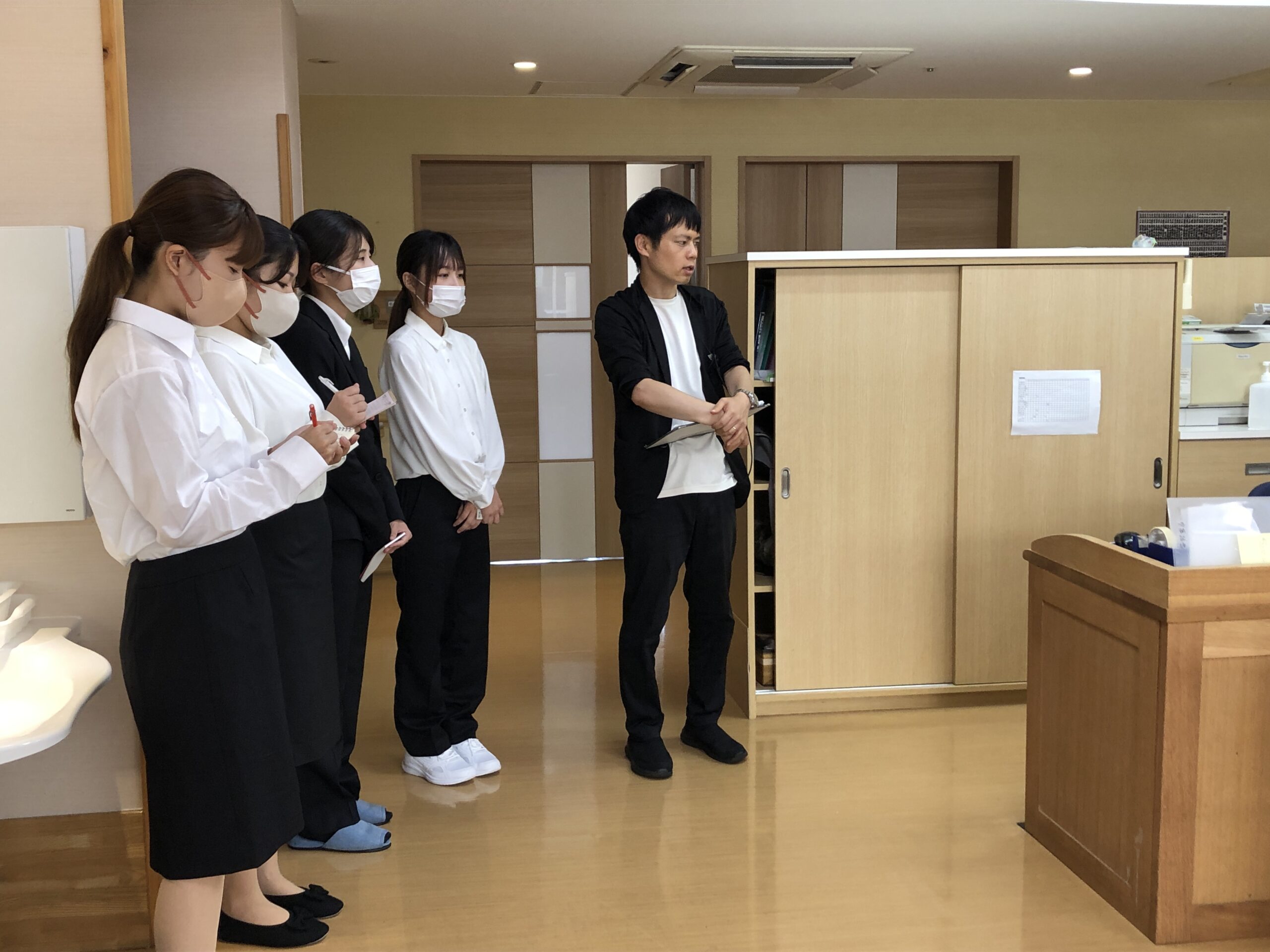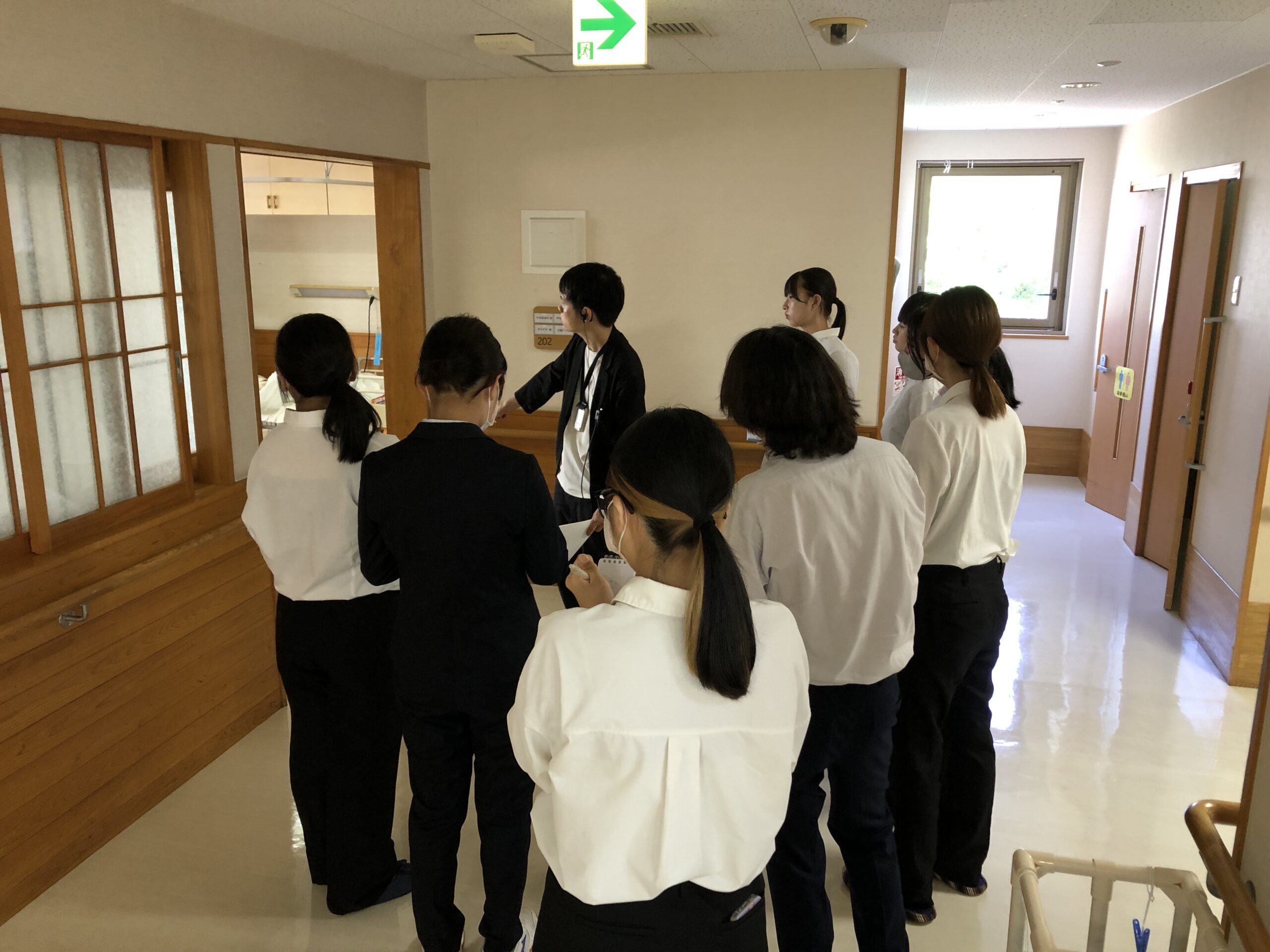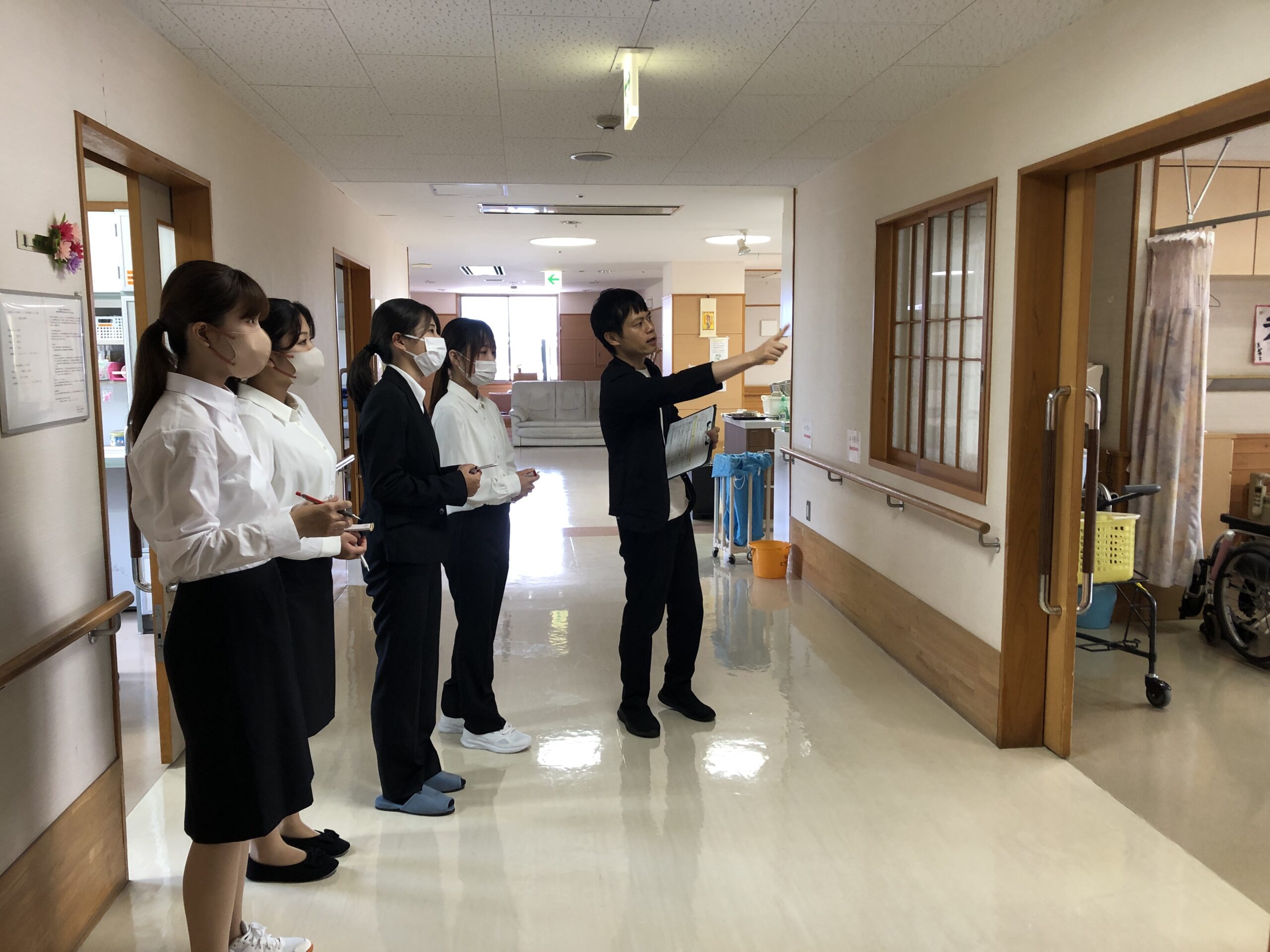 実際にまだ介護施設を見たことがない学生様も多くおり、特養(従来型・ユニット型)とデイサービス(一般型・認知症対応型)を見学していただきました。