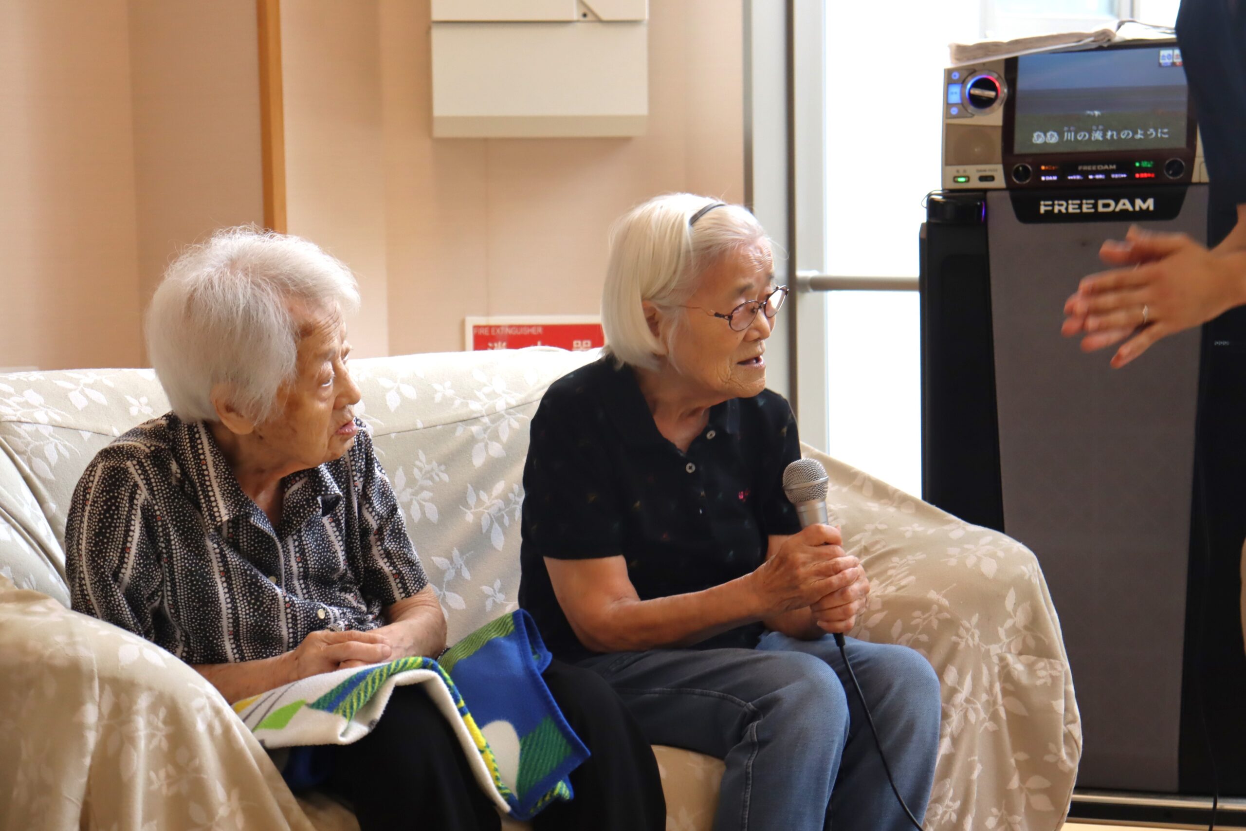 職員が懐かしの歌を流すと、多くの方が一緒に歌ってくださいました。