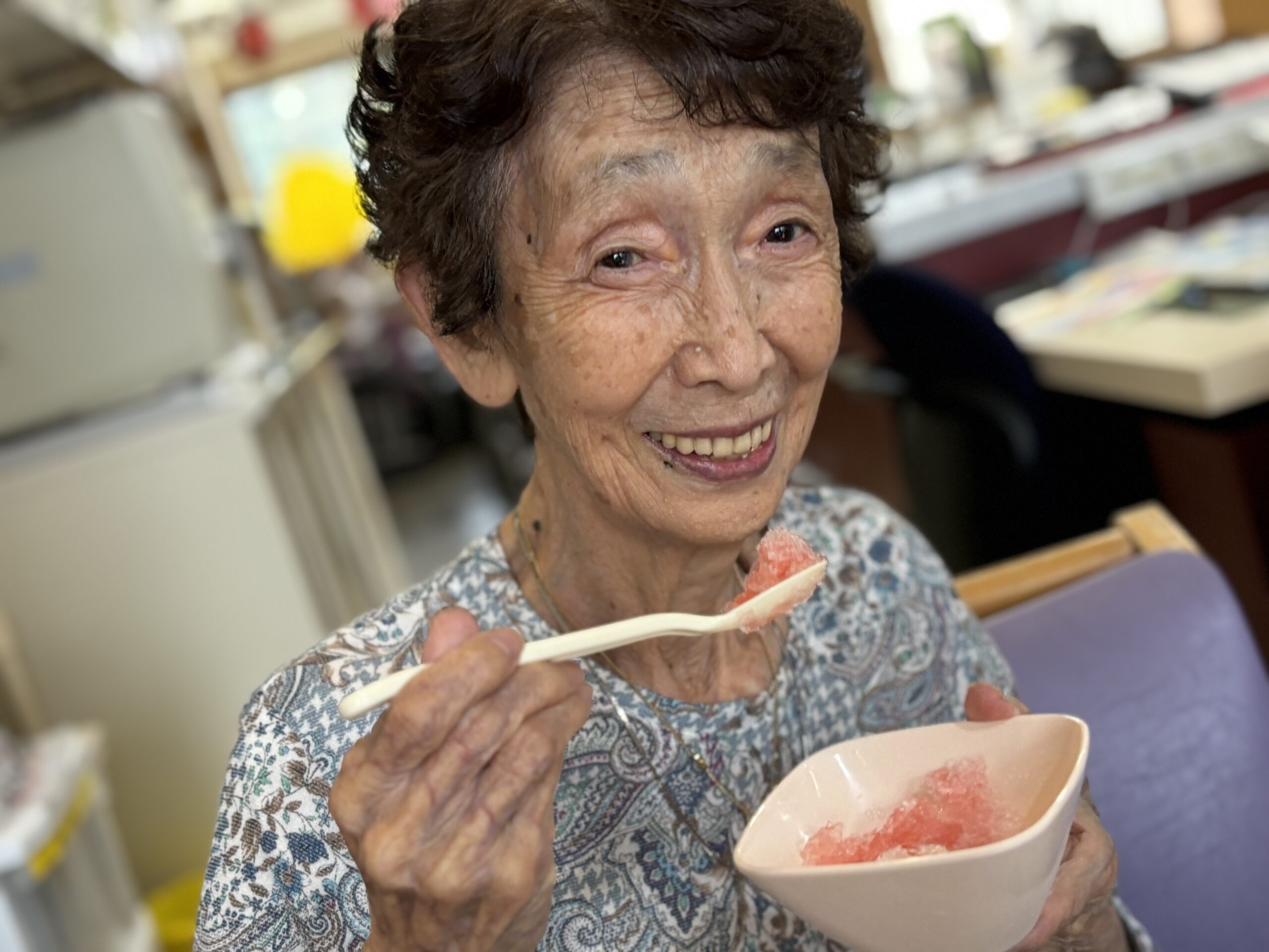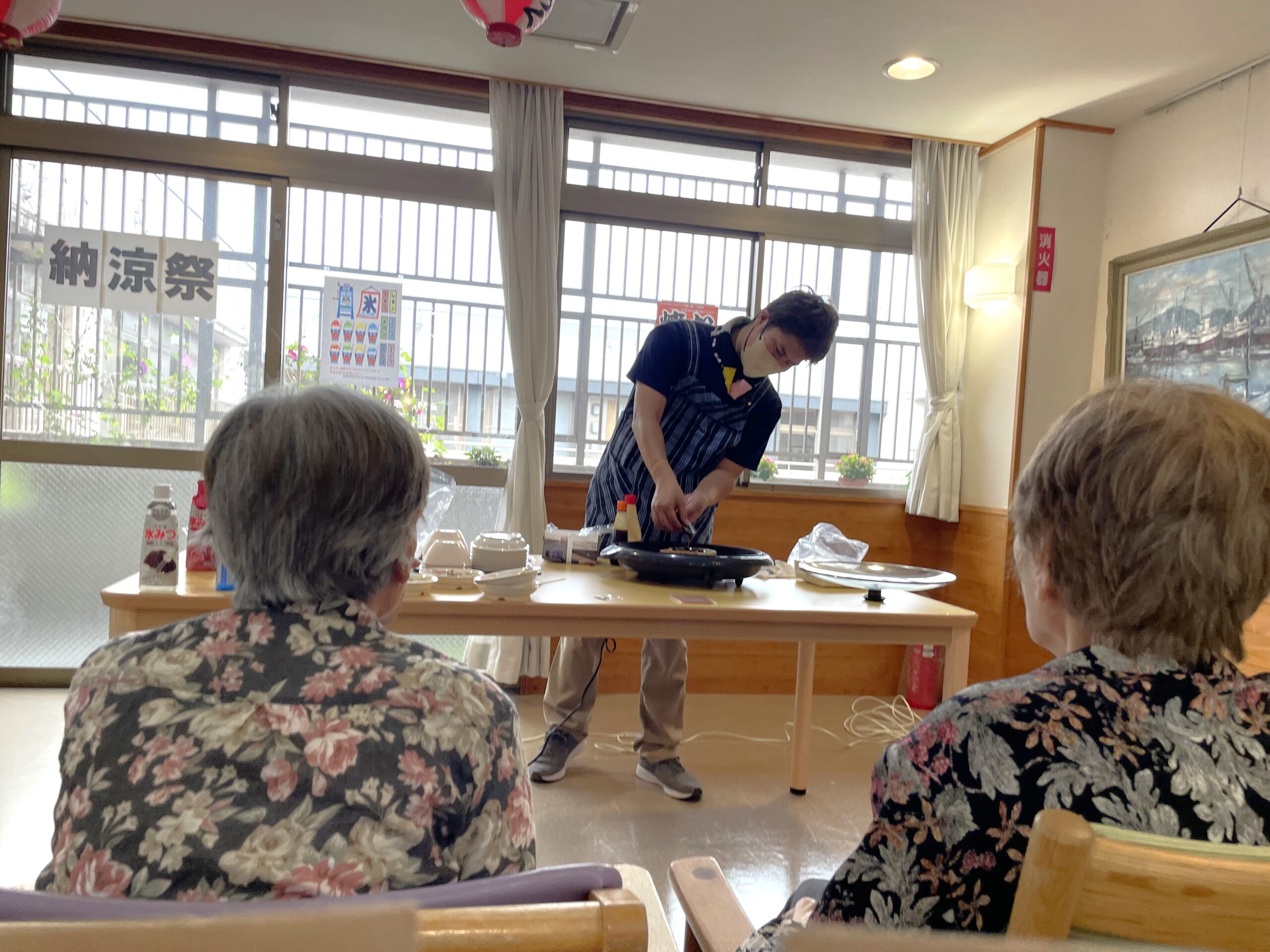 「今日はお祭りです。お好み焼きとかき氷を用意しています!」
