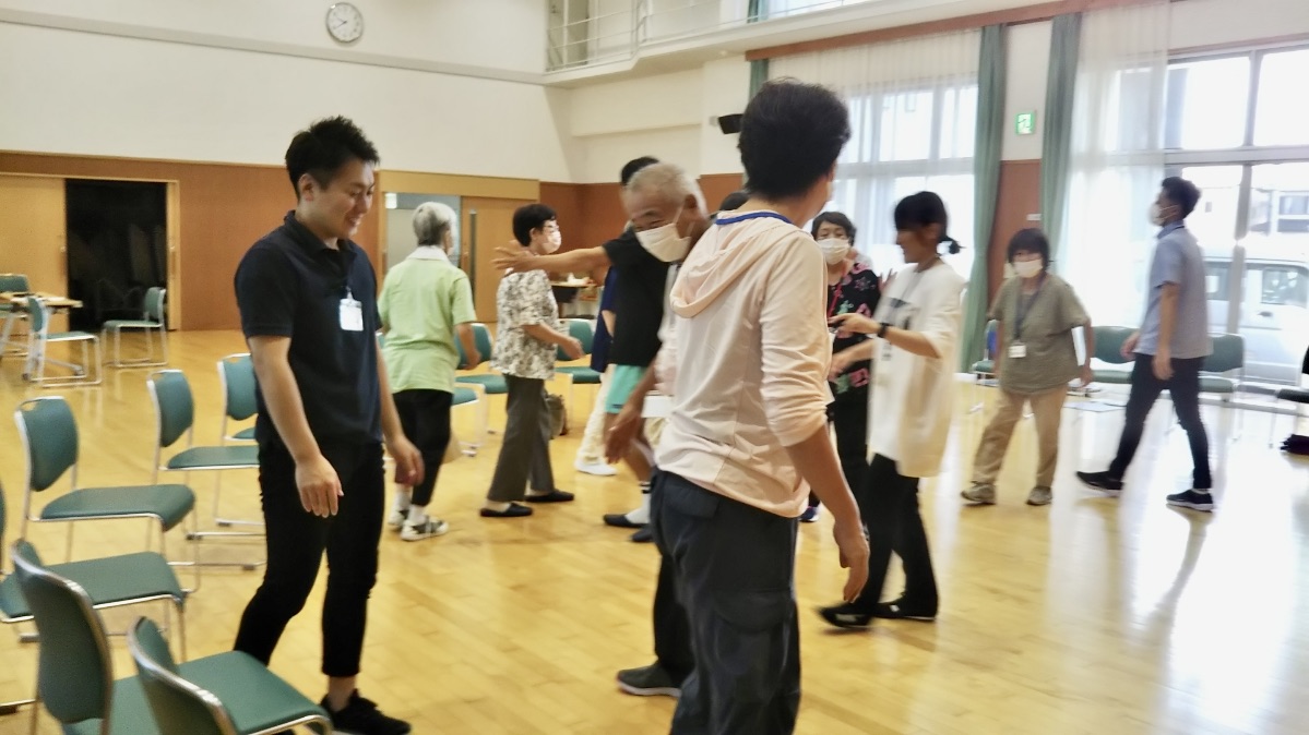 体や口、頭を動かしながら、個々でコミュニケーションをとり協力して、座って頂きました。