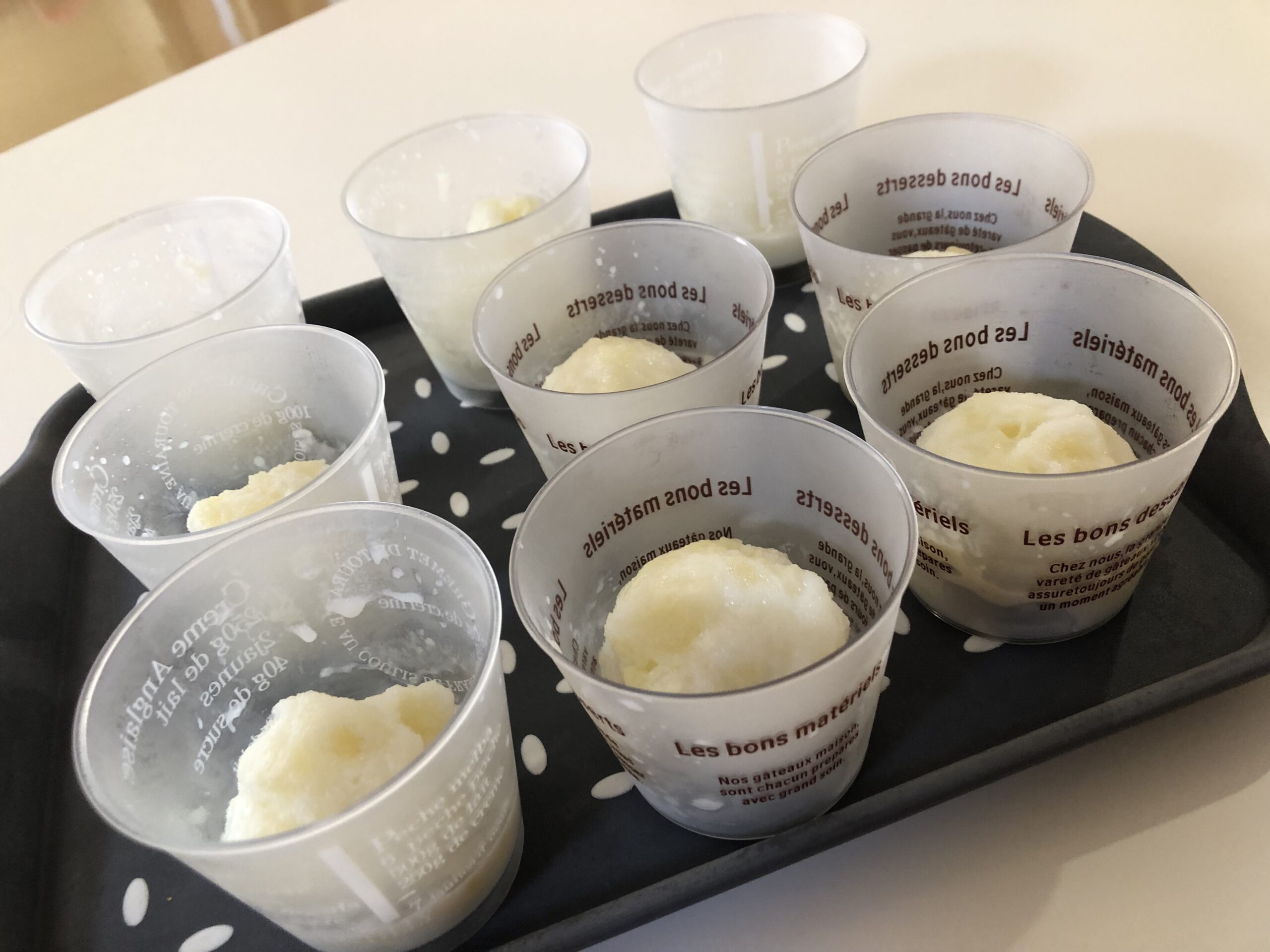 夏が旬の桃。お客様の「桃が食べたいね」の一言から始まり、夏の風物詩アイスと掛け合わせ、桃のアイスづくりをしました。