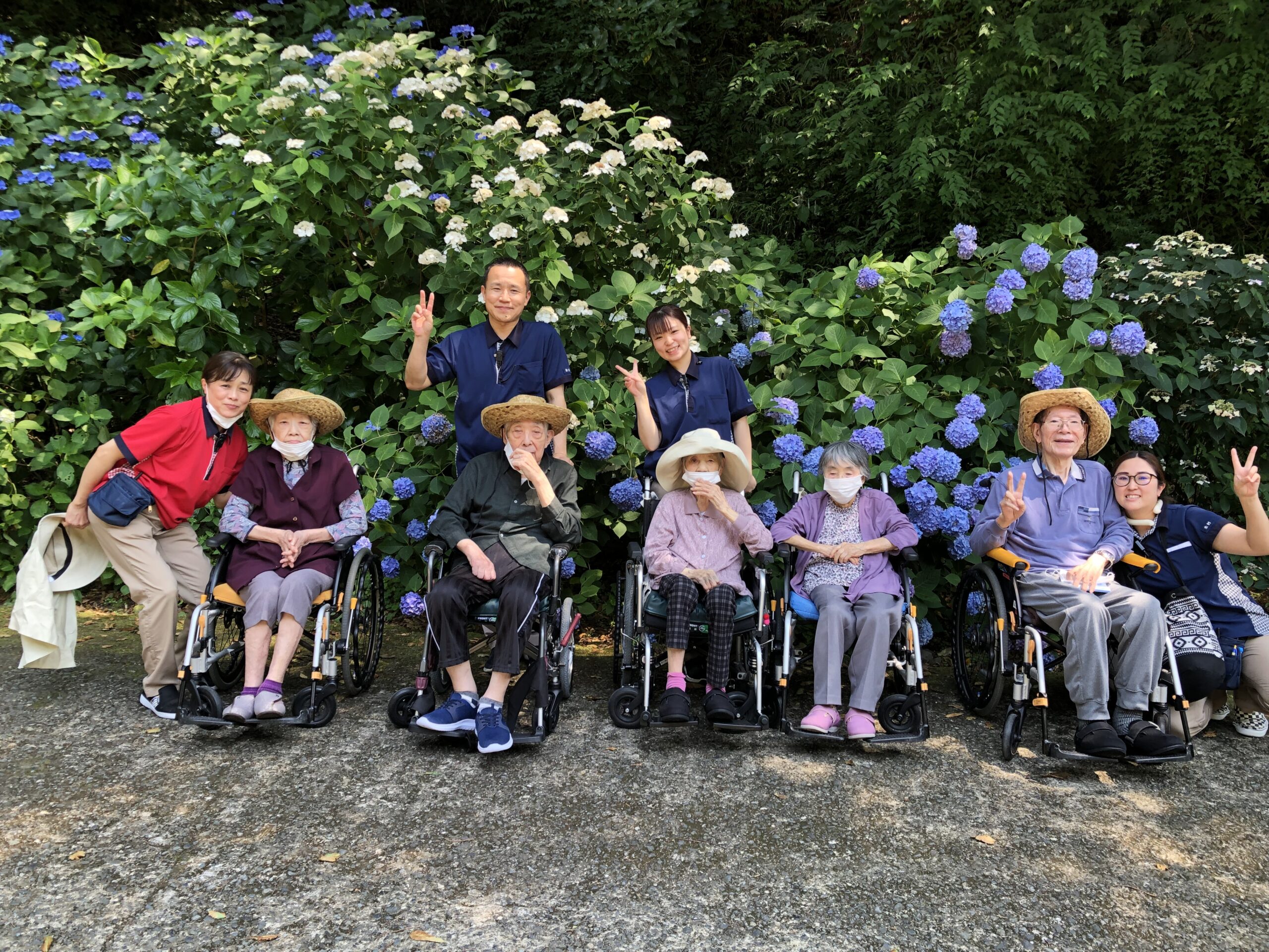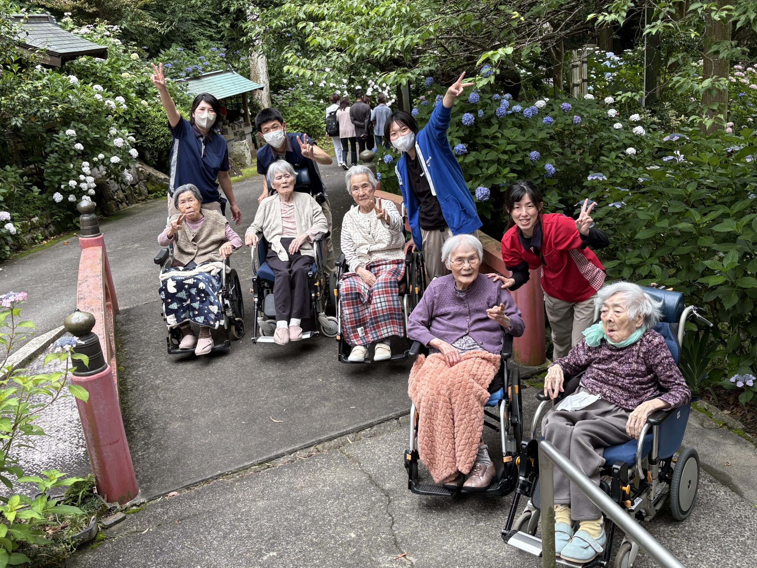 6月と言えば紫陽花という事で、毎年お馴染みの林叟院に紫陽花を見に行き、インスピレーションを大事に季節の壁画「紫陽花とてるてる坊主」を制作しました。