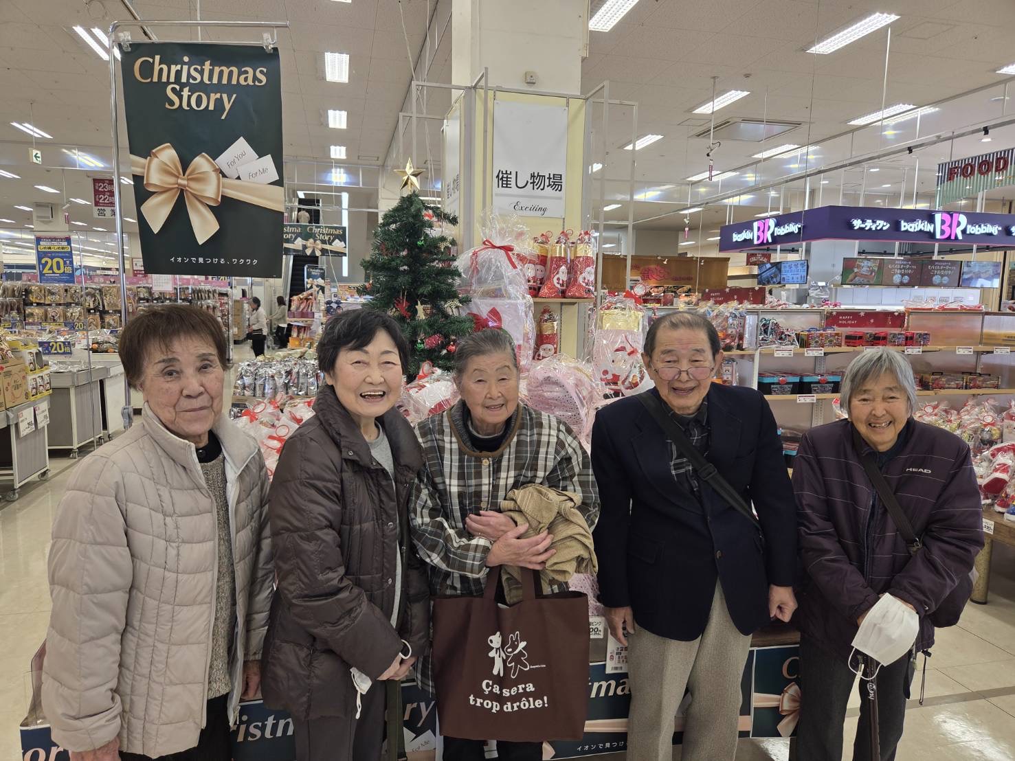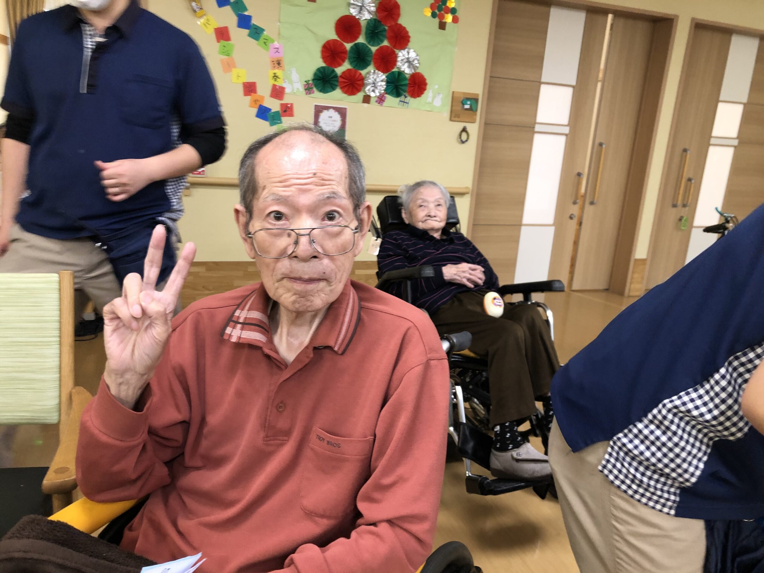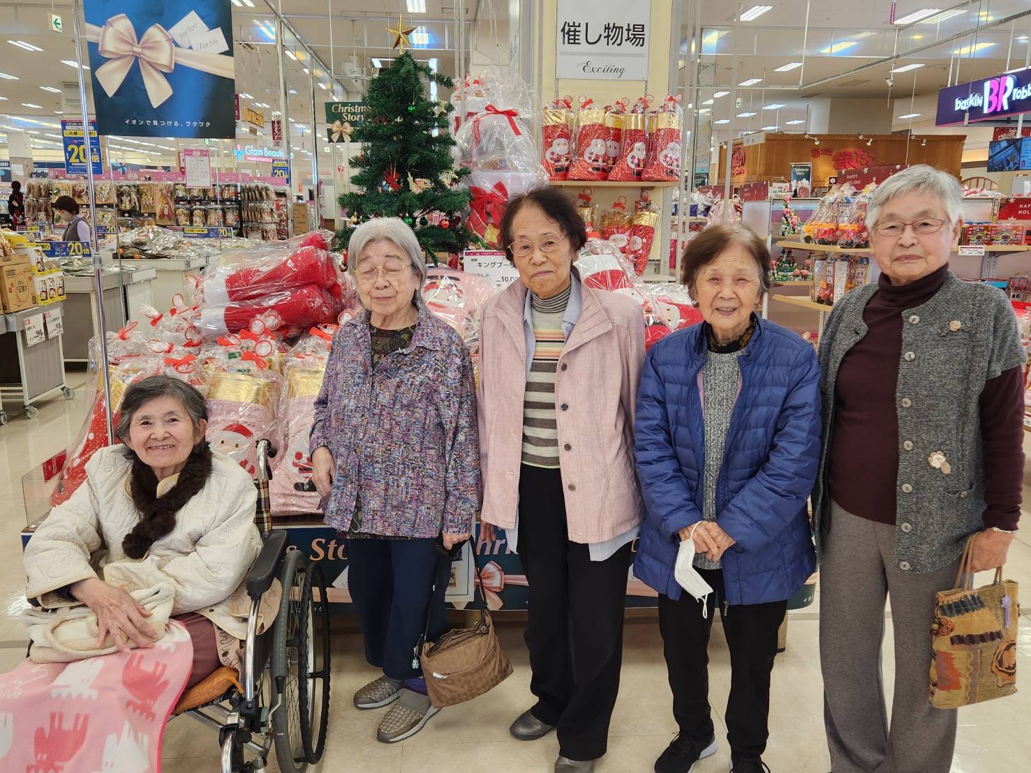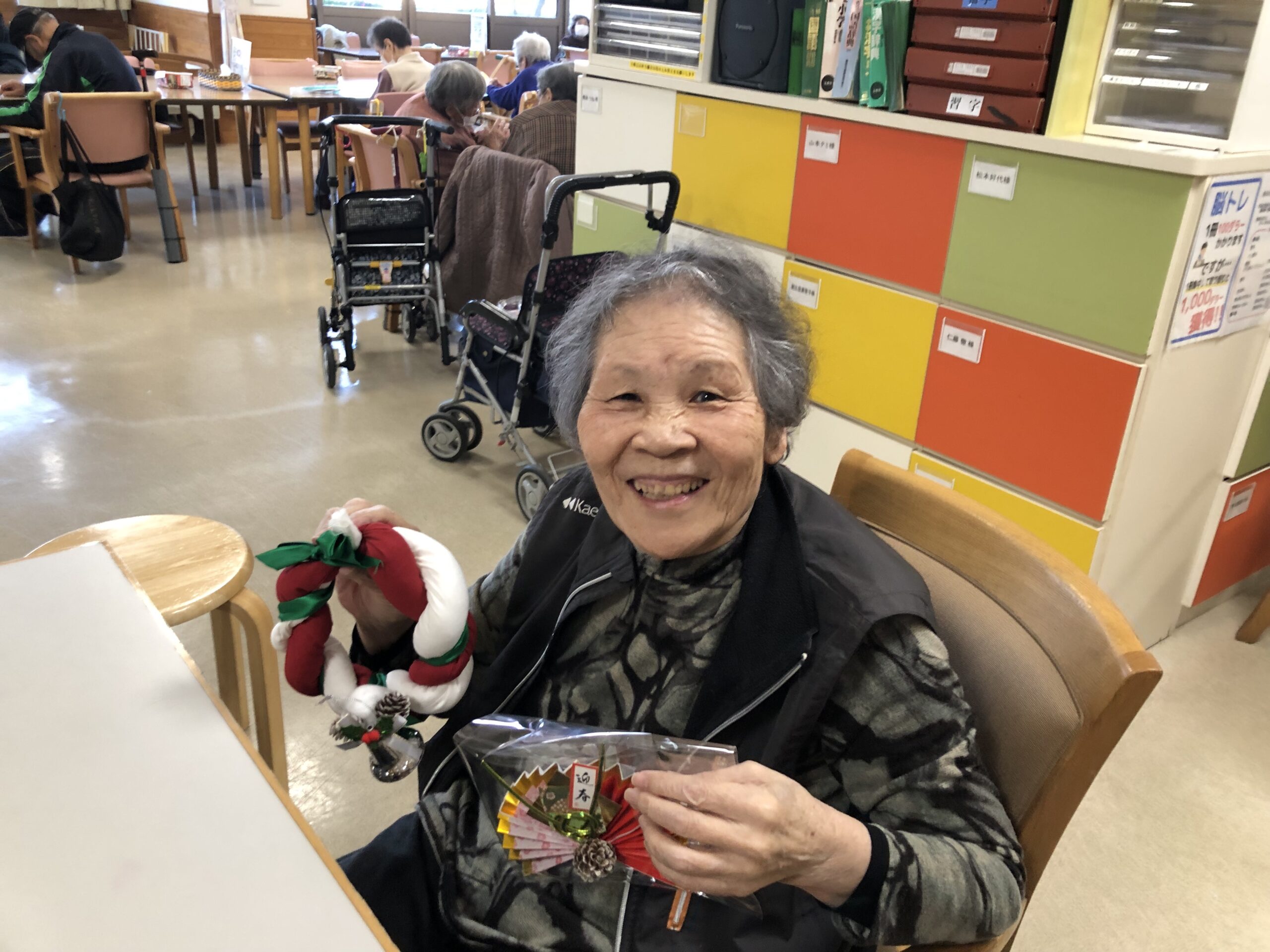 12/25 特養 クリスマス演奏会 12/19 デイサービス 年末大感謝祭ブラックフライデー開催! 12/17 本館 生きがいサポート「喫茶こうろく」 12/17 きすみれ 忘年会 12/15,16 デイサービス イオンでショッピング&フードコートでティータイム ツアー 12/11 デイサービス 趣味クラブ~クリスマス&お正月リース作り 12/8 本館3階 クリスマスツリー作り 11/18 ユニット3階 秋の作品づくり 11/13 本館2階 壁面飾り制作レク 11/1,2 地域貢献事業 Out of Kidzania inやいづ2025