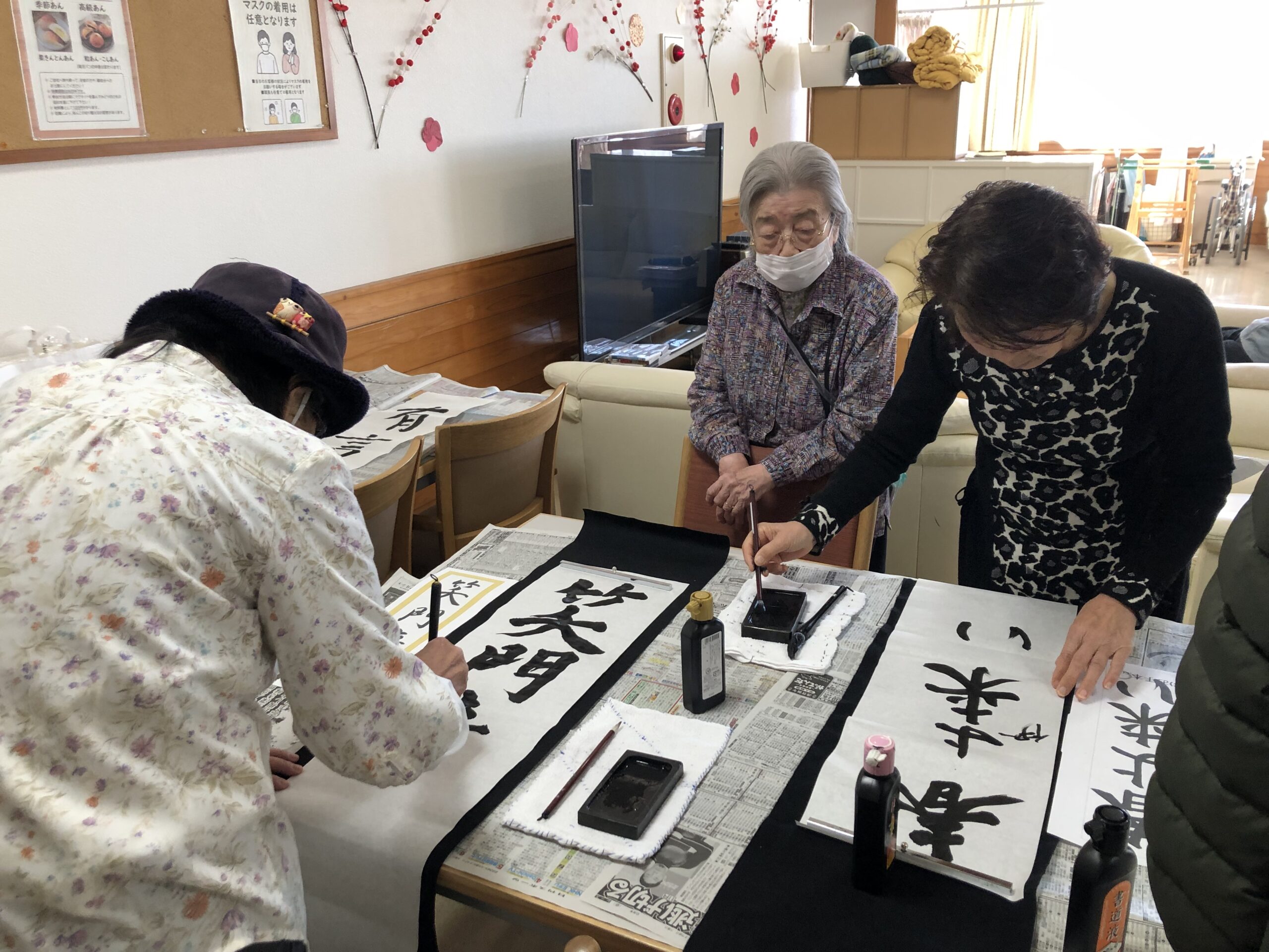 1/9 デイサービス 新春書初め大会 1/1~3 高麓神社で初詣 12/25 特養 クリスマス演奏会 12/19 デイサービス 年末大感謝祭ブラックフライデー開催! 12/17 本館 生きがいサポート「喫茶こうろく」 12/17 きすみれ 忘年会 12/15,16 デイサービス イオンでショッピング&フードコートでティータイム ツアー 12/11 デイサービス 趣味クラブ~クリスマス&お正月リース作り 12/8 本館3階 クリスマスツリー作り 11/18 ユニット3階 秋の作品づくり