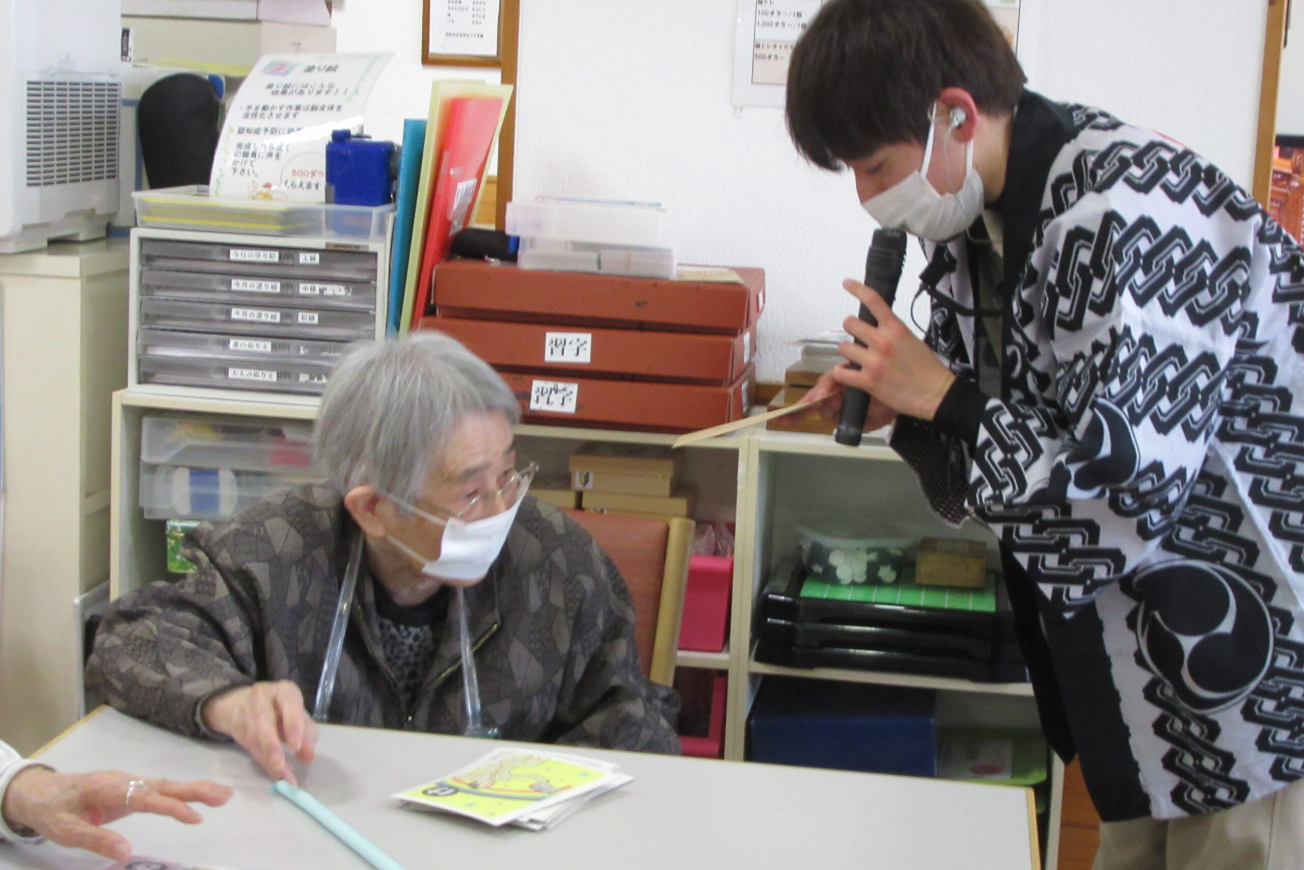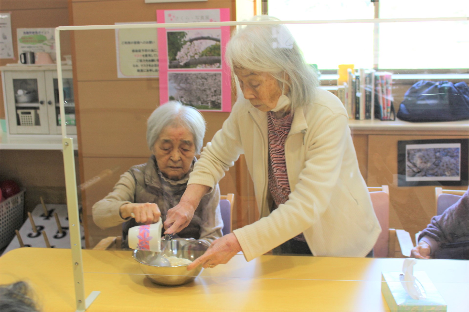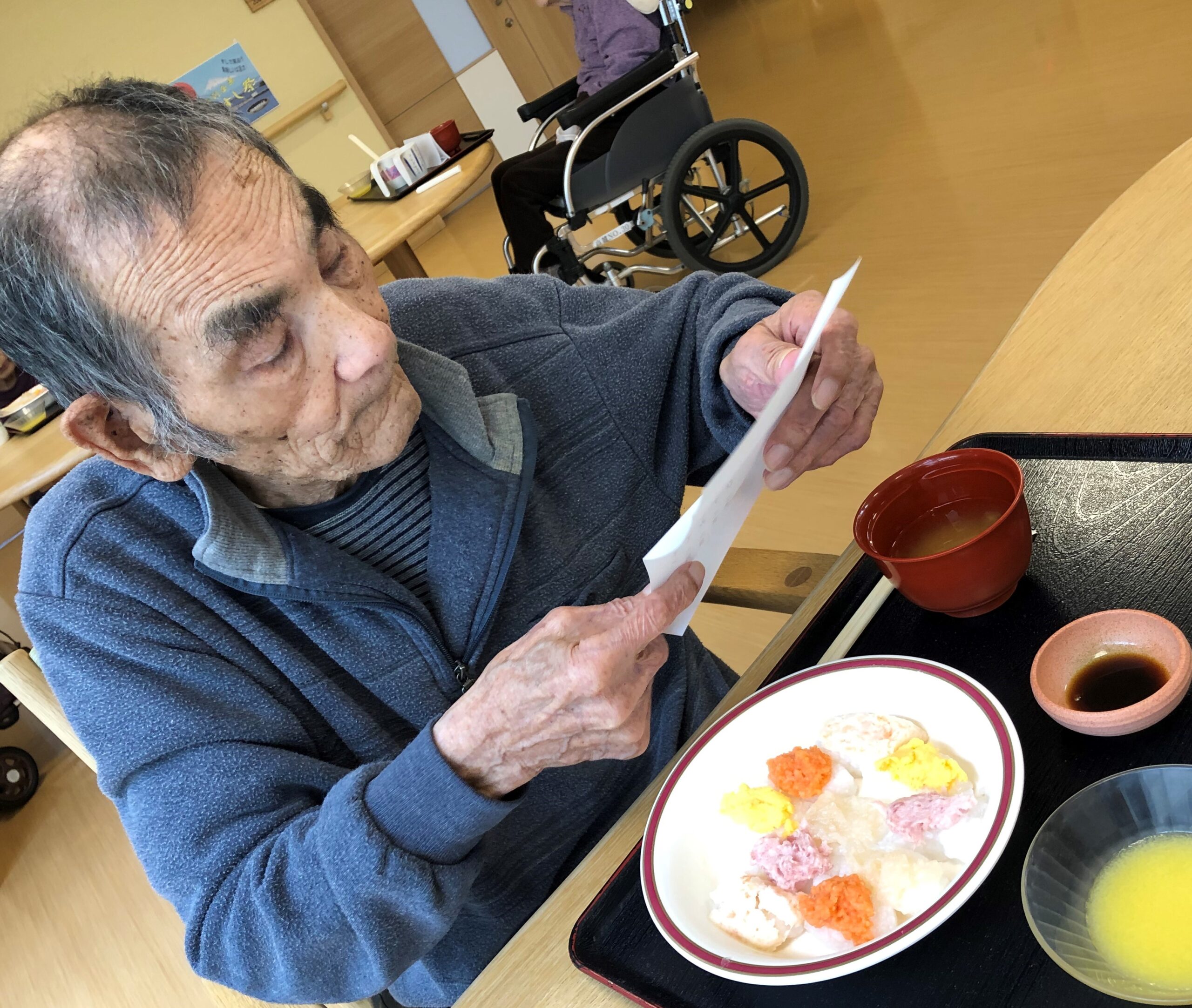 5/20 本館3階ショートステイ お茶会とビンゴ大会 5/16 寿司給食 4/20 本館3階ショートステイ 春のおやつ作り~桜も添えて~ 4/19 春の味覚をいただきました! 4/15 本館3階和 久しぶりの屋外散歩 本館3階ショートステイ 蒸しパン作り きすみれ桃の節句・三色白玉作り 1月22日 デイサービス 新春カルタ大会第二弾! 1月9日 デイサービス フラワーアレンジメント 1月5日 デイサービス 新春カルタ大会