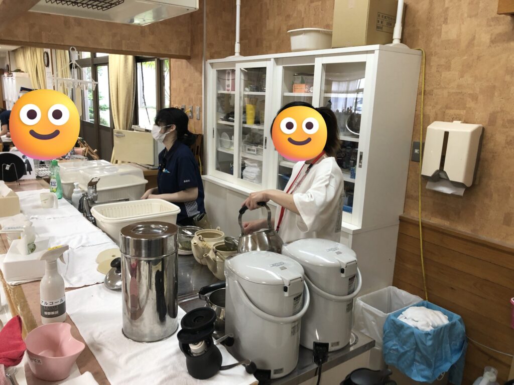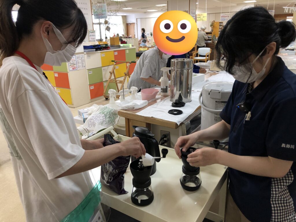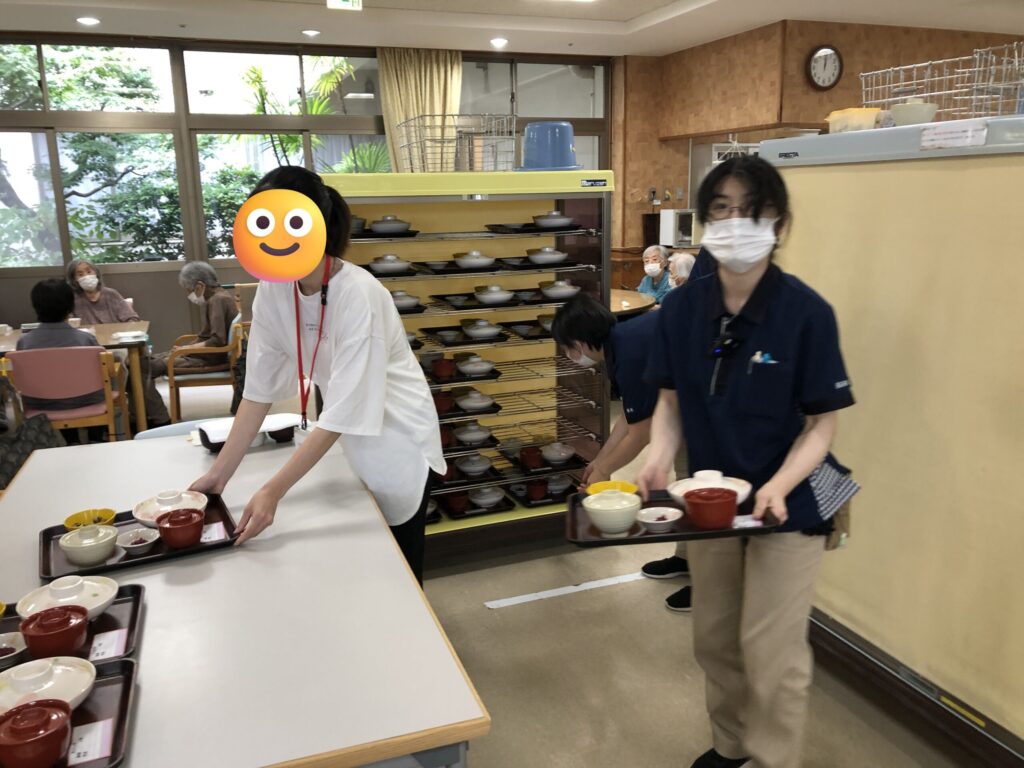 2日目、3日目はそれぞれ午前と午後でデイサービス体験、体操やコミュニケーション、配膳やお茶づくりなどのバックヤード業務を体験し、デイサービスの仕事・役割を実体験しました。