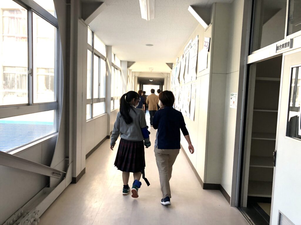 廊下を歩くなどをしていただき、視界が見えにくい、音が聞こえにくい等を体感。
