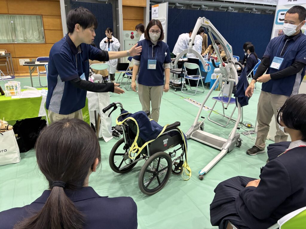 高麓では、介護のイメージチェンジを中心に、専門の学校で学ばなくとも(より学んだほうがよいですが)介護の仕事にチャレンジでき、働きながら国家資格「介護福祉士」が取れること、力がなくともボディメカニクスの理解や介護ロボット・用具を用いれば簡単に介助ができる技術職であることを知っていただく機会としました。