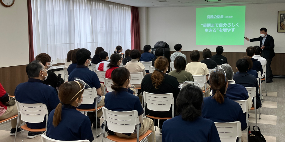 経験者も未経験者も1日かけ、法人や施設の方針、諸規程、マナーや法定研修を実施し、高麓のルールを学びます。