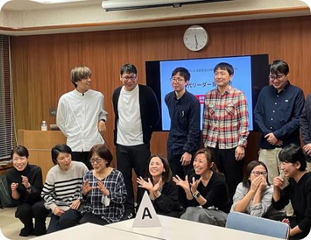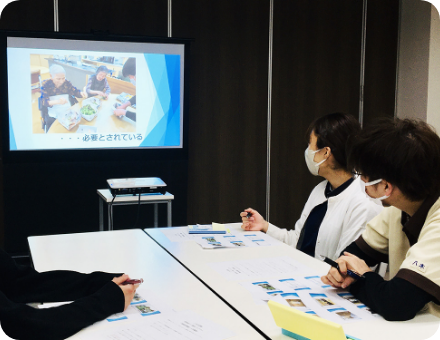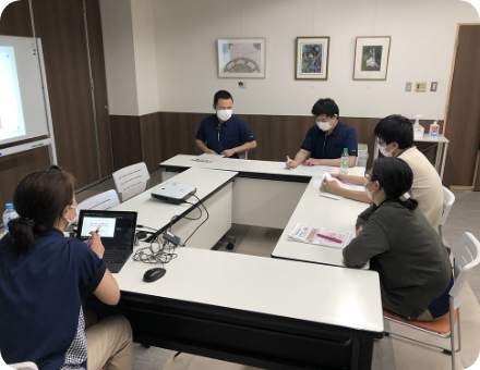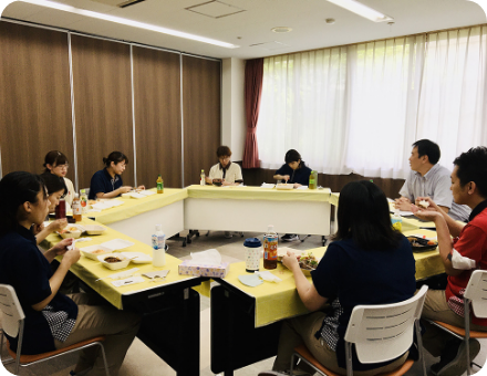 選抜された役職者が他法人と一緒にお互いの業務での課題を情報交換したり、一緒に解決策を模索したりする研修に参加します。