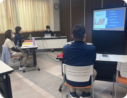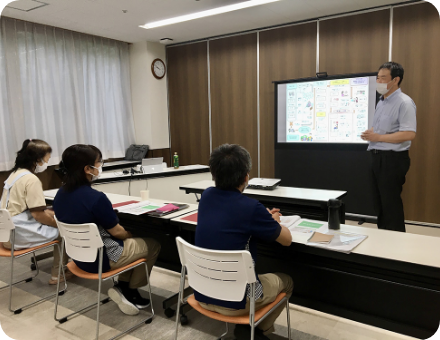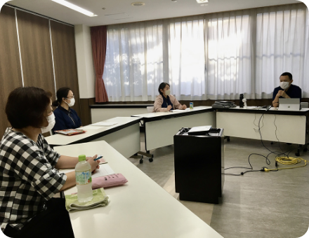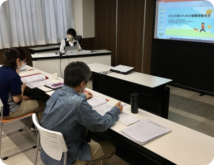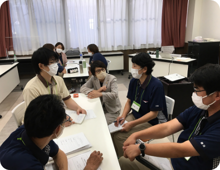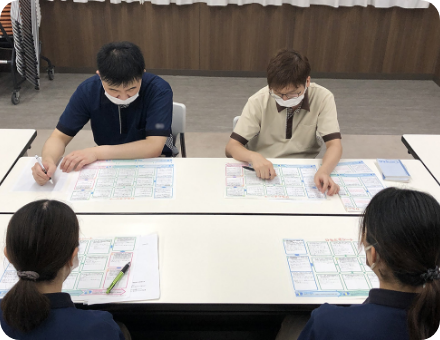 生活相談員やサービス管理者を対象に対応力の向上、外部の介護支援専門員やご家族との関わり方、内部の調整能力を向上するべく互いに学びます。
