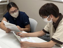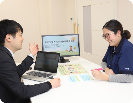 入職後1か月後に採用担当と、2.5か月後に所属長と面談し、教育育成支援と今までの経歴から自身の役割設定や法人や業務の改善意見をヒアリングします。以降は目標設定面談や人事考課評価のフィードバック面談で定期的に面談します。
