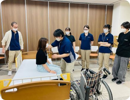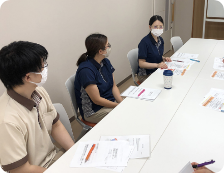 上半期は8月までに夜勤同行に入り、1人立ちができるよう技術や知識、対応方法等を学びます。下半期は担当のお客様を持ち、担当のお客様の「望む暮らし」の実現ができるよう介護保険の仕組みや他職種との連携、環境整理方法等を学びます。また、非養成校出身者等未資格者は試用期間6か月経過後 認知症介護基礎研修を受講します。