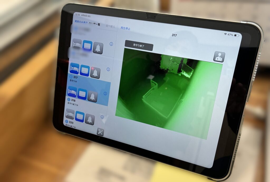 特別養護老人ホーム高麓(従来型・ユニット型)では、キング通信工業社の「シルエット見守りセンサー」を導入し、受信端末としてスマートフォン・タブレット連携をしました。
