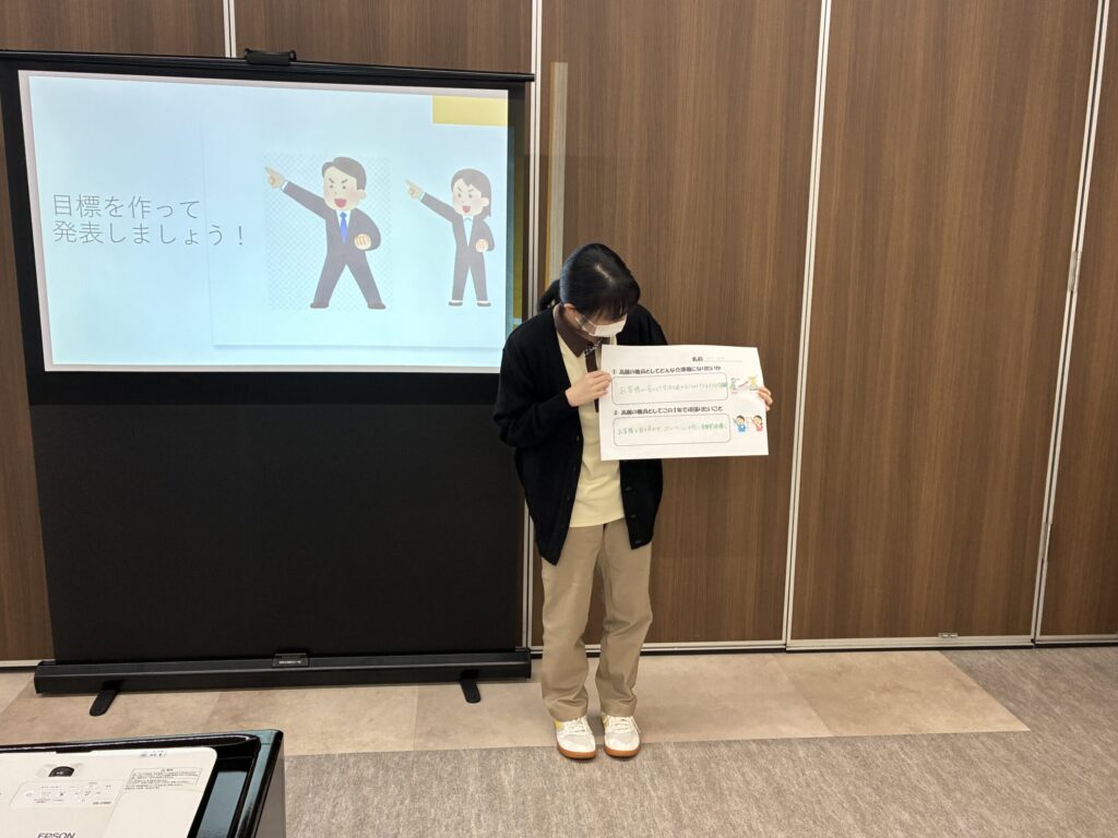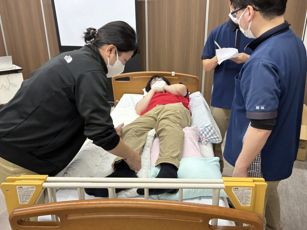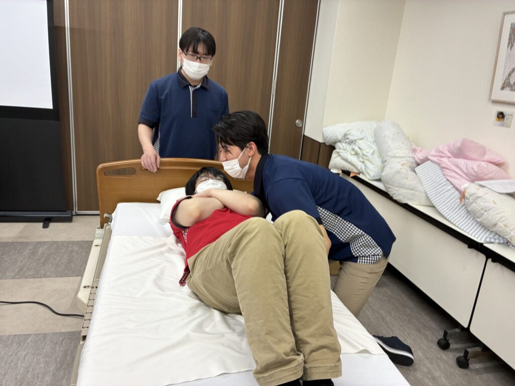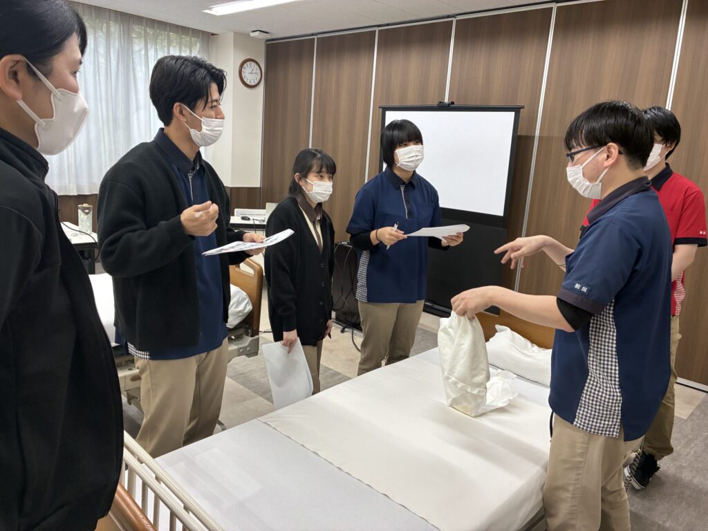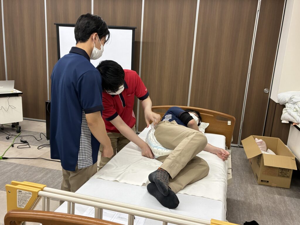 26卒新人研修~振り返り・目標設定・配属辞令 26卒新人研修~高齢者の心身機能・医療の基礎・実技~ 26卒新人研修~介護技術講義 着脱介助・入浴介助~ 26卒新人研修~介護技術講義 排泄介助・体位交換・ポジショニング~ 26卒新人研修~介護技術講義 食事介助~